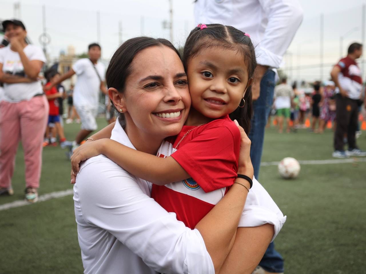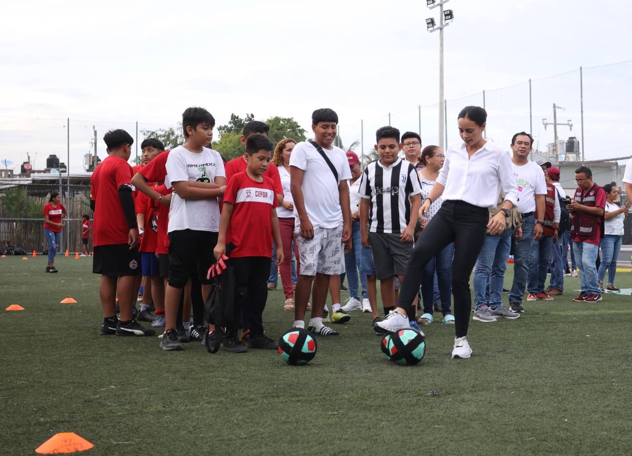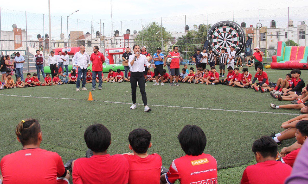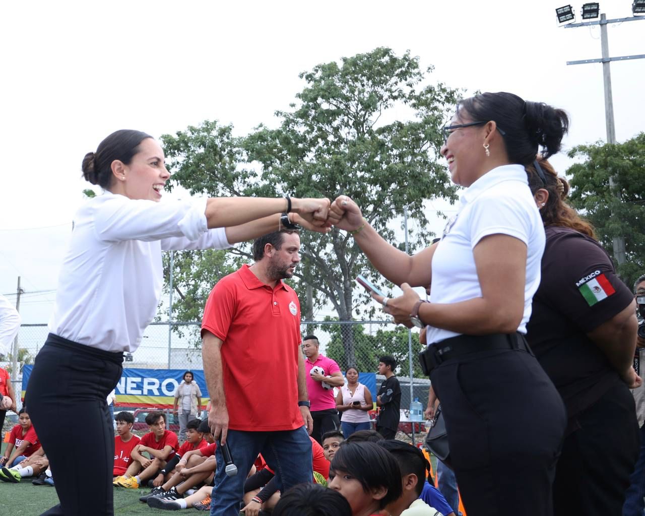 Cancún, Q. R., a 21 de agosto de 2023.- En un ambiente familiar, de diversión y convivencia, la Presidenta Municipal, Ana Paty Peralta, encabezó la sexta edición del programa "El fútbol nos une”, organizado por la Asociación del Club Pioneros de Cancún, en colaboración con diversas dependencias e institutos del Ayuntamiento, con la intención de promover dicho deporte en la comunidad, la sana convivencia y reducir las brechas de desigualdad.