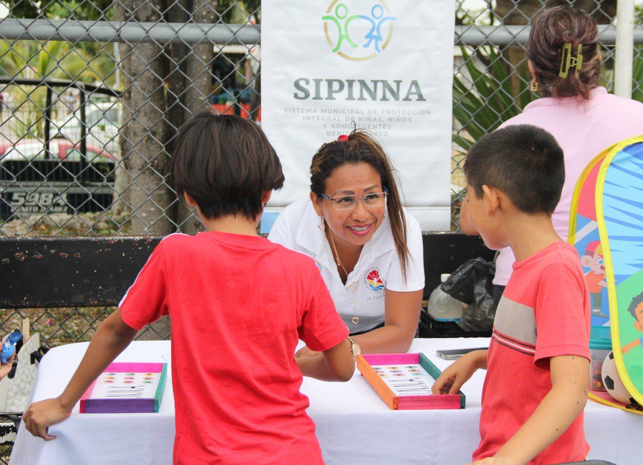 En esta jornada organizada en la colonia Las Palmas en la Supermanzana 259, la Primera Autoridad Municipal participó junto a decenas de niñas, niños y jóvenes cancunenses en las actividades y dinámicas dirigidas justamente para la integración comunitaria, tales como el juego de cuatro esquinas, tiro al blanco con balón, juegos en los inflables interactivos, etcétera.