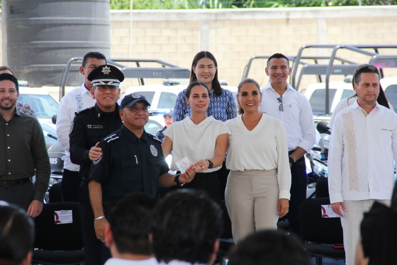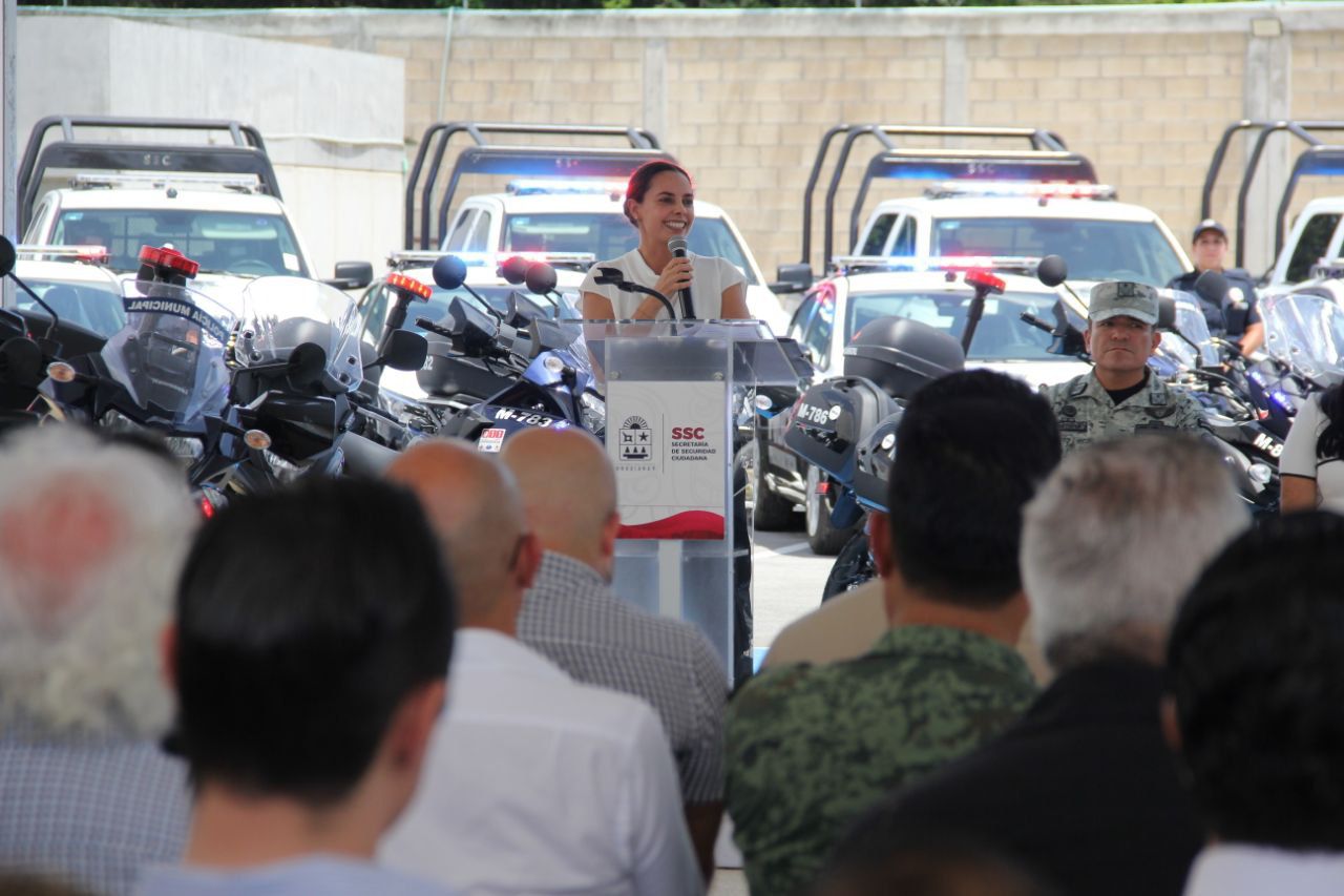 En su carácter de anfitriona en Cancún, Ana Paty Peralta entregó junto a la Gobernadora, 35 vehículos tipo pick up, 20 motocicletas, seis unidades tipo sedán, cuatro cuatrimoto y 1 ambulancia de urgencias básicas a la Secretaría antes mencionada y al Escuadrón de Rescate y Urgencias Médicas (E.R.U.M), permitiendo reforzar las acciones de prevención y atención para la preservación de la paz.