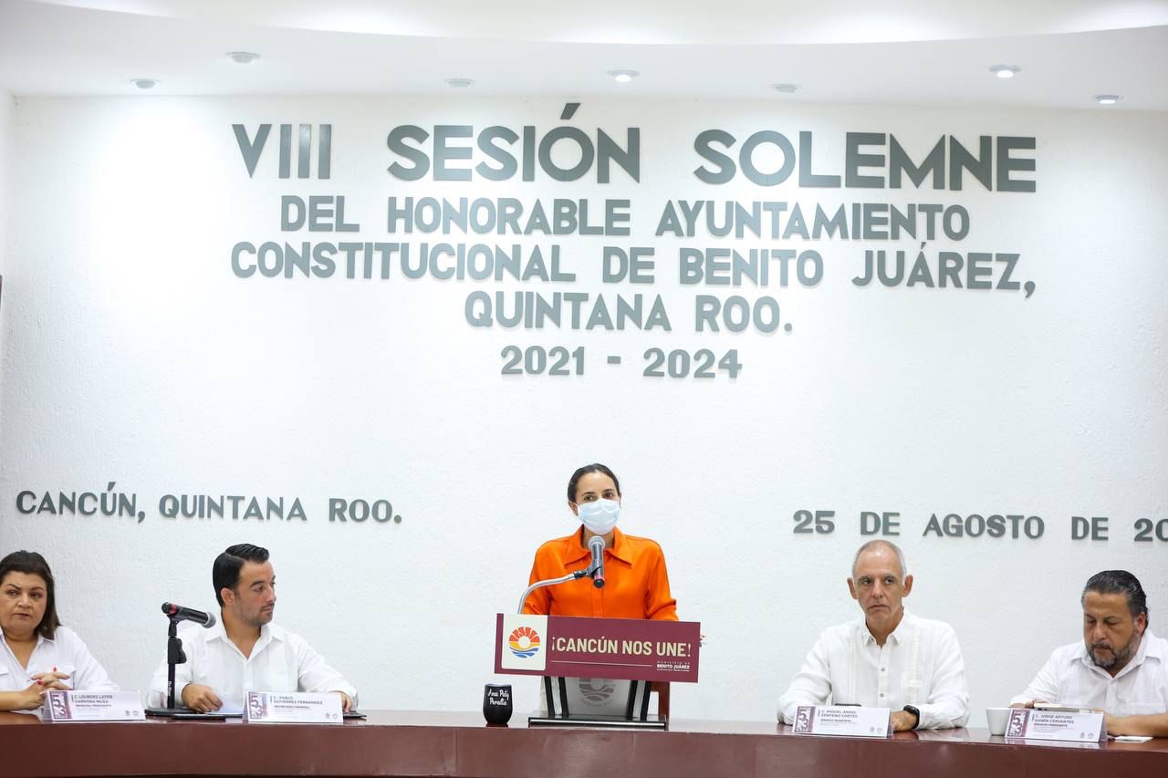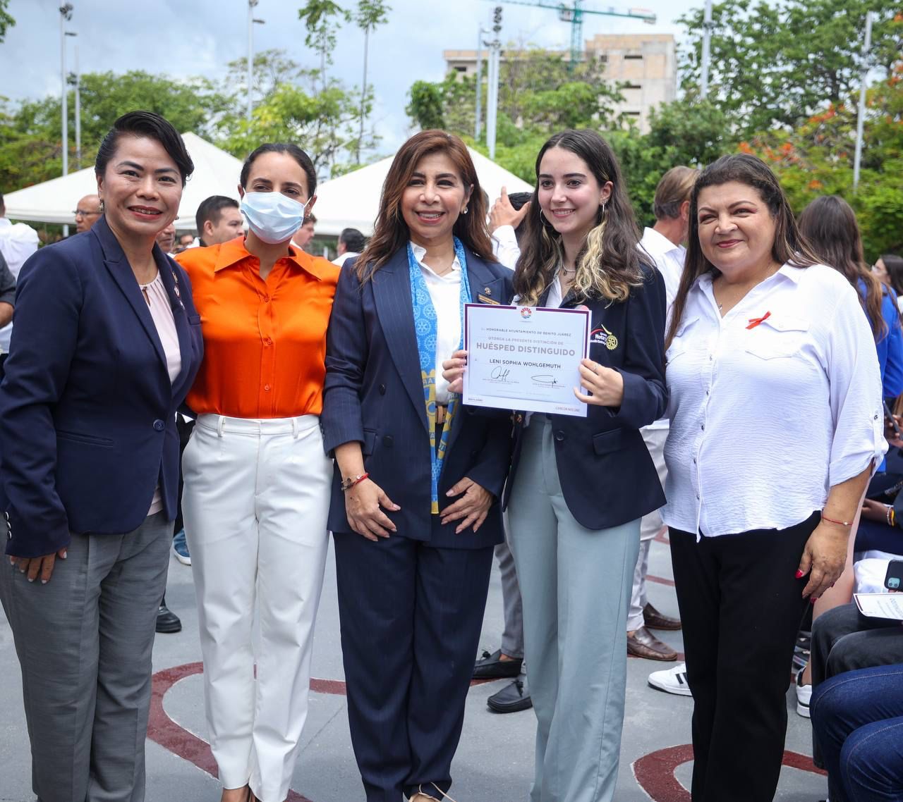 Cancún, Q. R., 25 de agosto de 2023.- En la Octava Sesión Solemne, encabezada por la Presidenta Municipal, Ana Paty Peralta, el Cabildo de Benito Juárez otorgó la distinción de Huésped Distinguido a 74 jóvenes de 19 países que asisten al Intercambio 2023-2024 de Rotary Youth Exchange Distrito 4195-México, por la labor humanitaria y altruista que realizan en sus ciudades y comunidades.