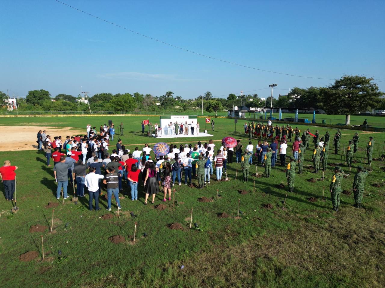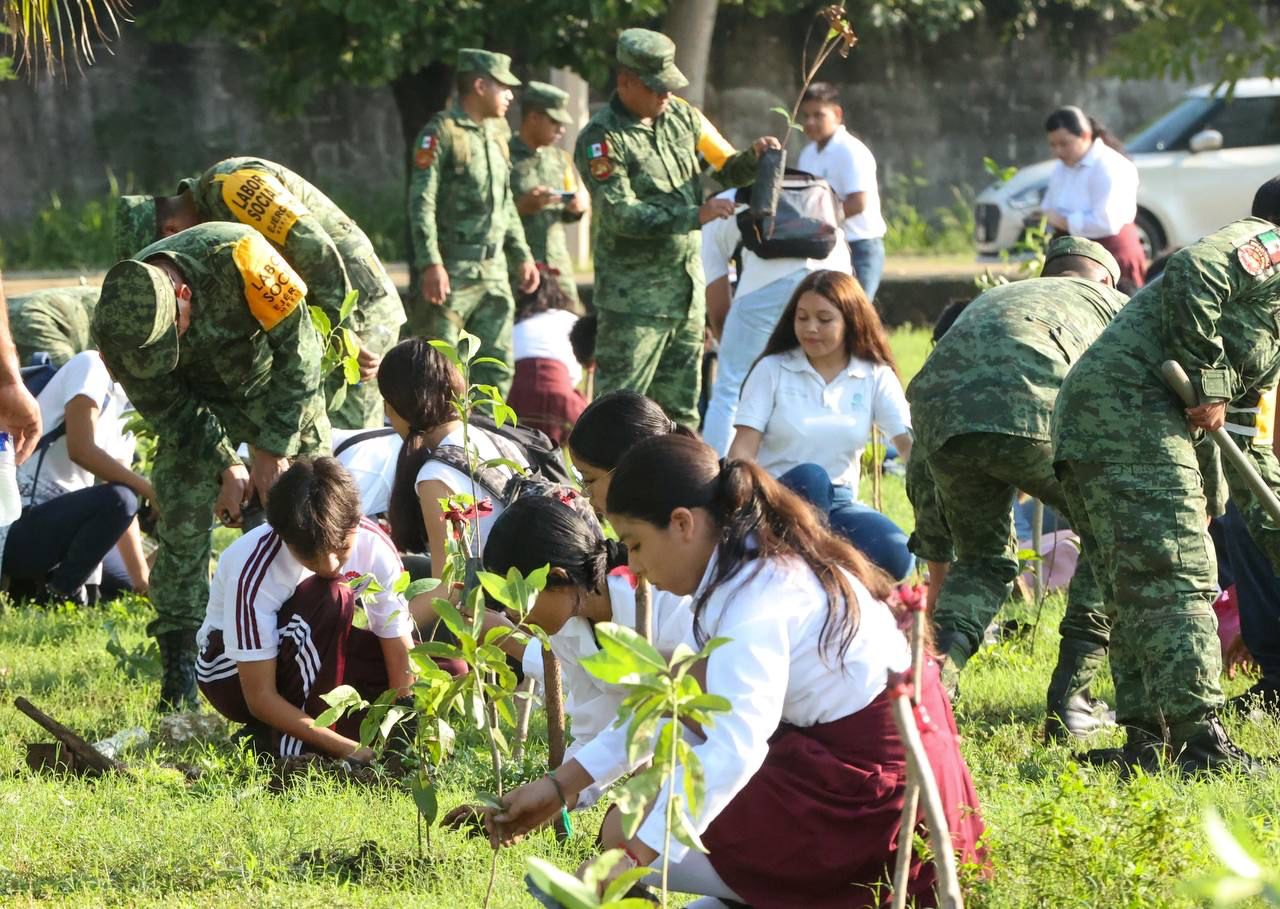 En ese marco, se anunció que 500 de los ejemplares provenientes del vivero forestal militar de Felipe Carrillo Puerto serán para la unidad deportiva a un lado del domo y otros 200 se repartirán para las escuelas de la delegación, con el fin de contrarrestar el cambio climático.
