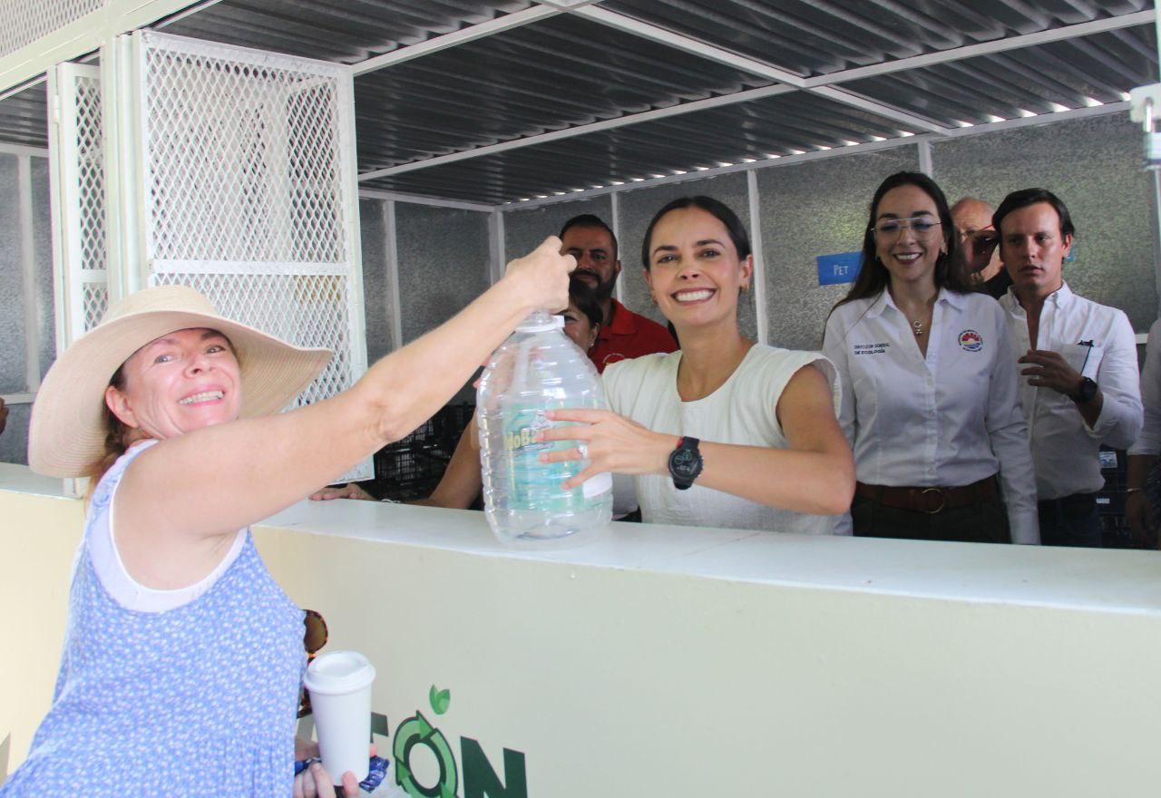 Después del corte de listón inaugural del lugar, la Presidenta Municipal saludó al artista Miguel Castillo, quien hizo un mural en la fachada del sitio con imágenes de niños jugando en un área verde, además constató la colocación de los primeros desechos ya separados.