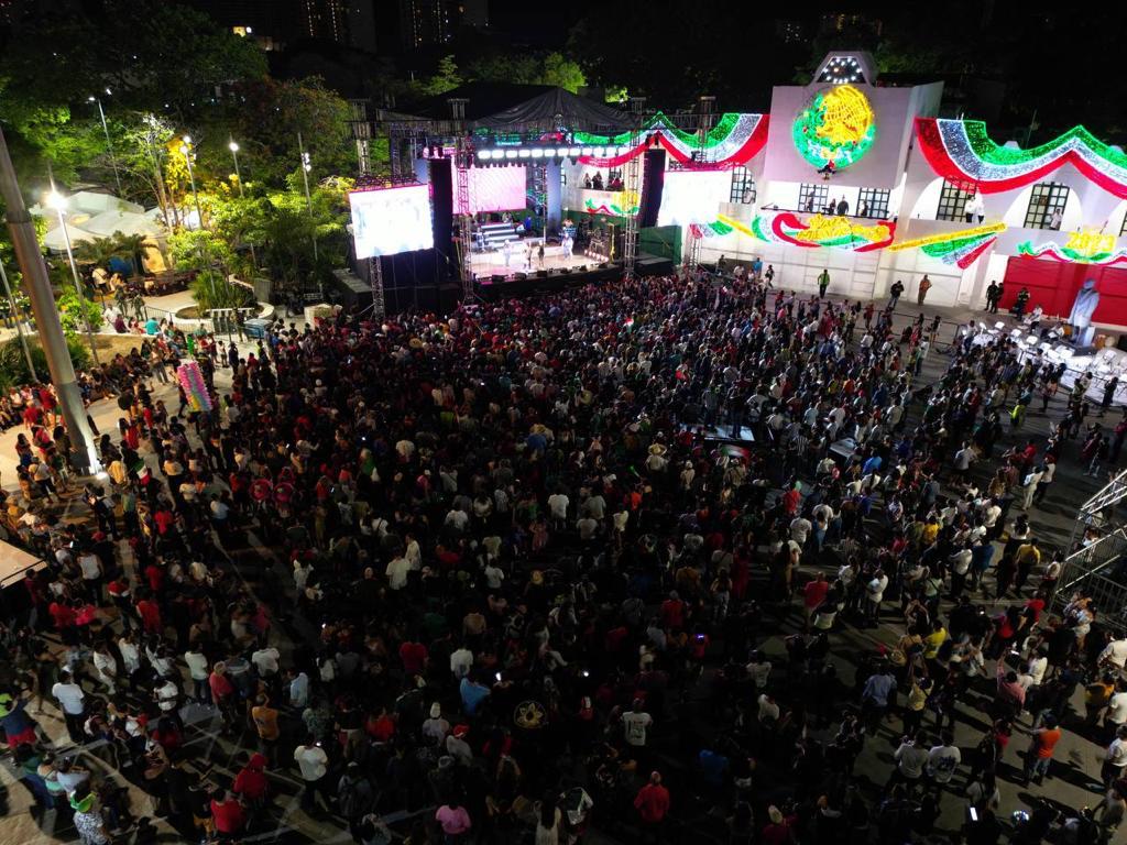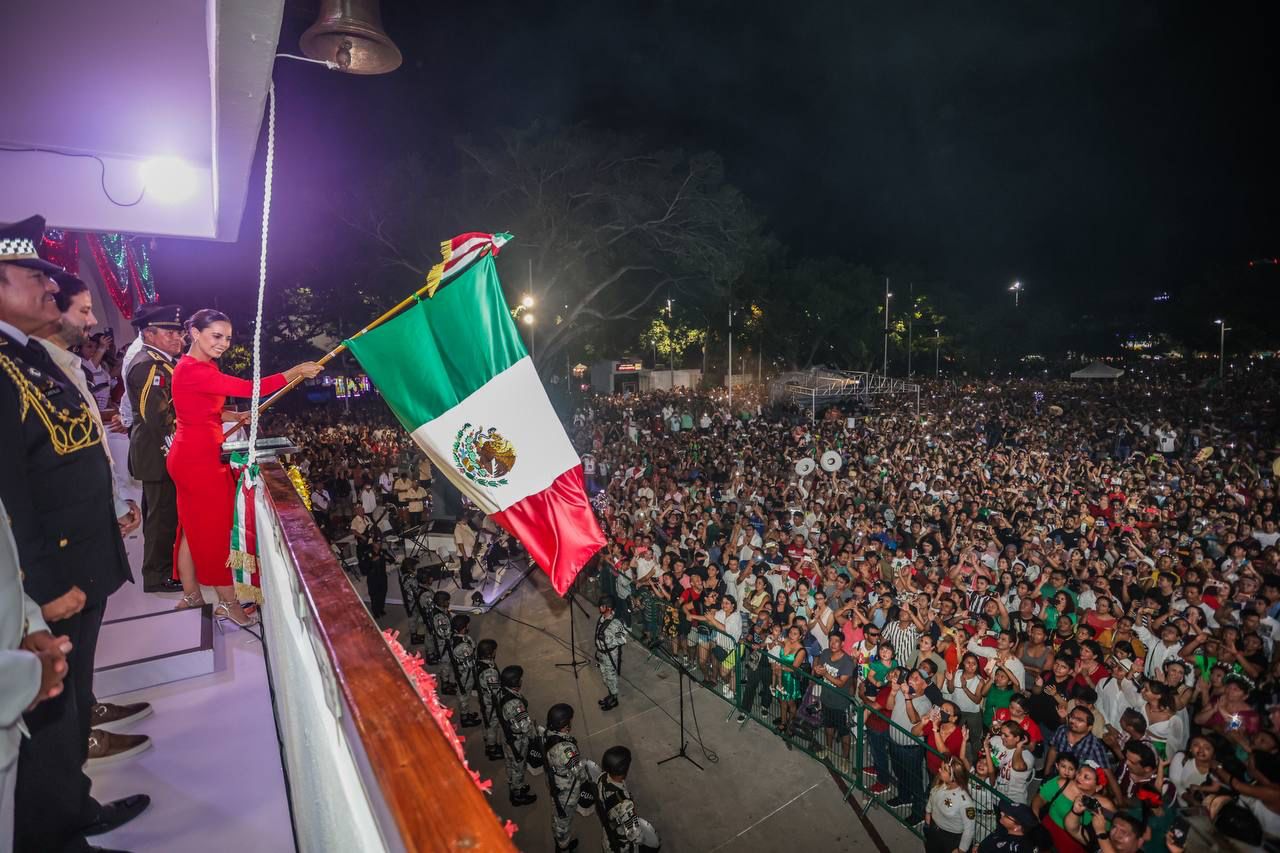 Cancún, Q. R., a 15 de septiembre de 2023.- Ante más de 15 mil personas que se dieron cita en la Plaza de la Reforma del Palacio Municipal, para mostrar su fervor patrio en esta fecha, la Presidenta Municipal, Ana Paty Peralta, emuló a los héroes que hicieron libre a la Nación, al encabezar la ceremonia del 213 Grito de Independencia con una fiesta colorida y sana para las familias cancunenses sin pirotecnia ni alcohol.
