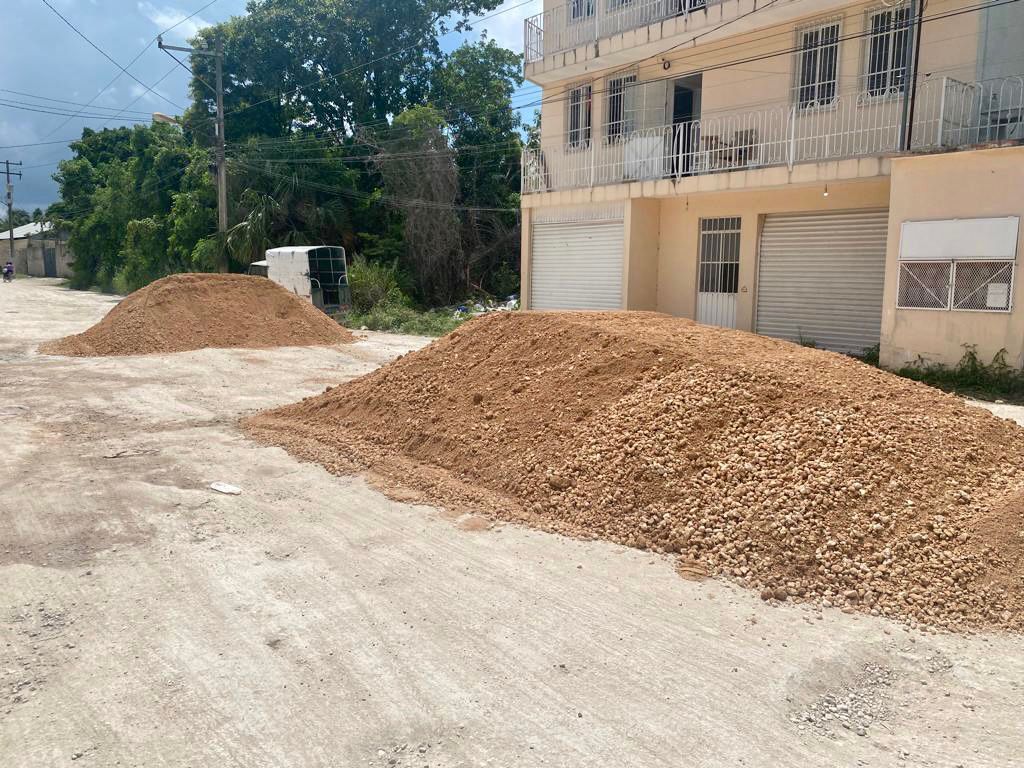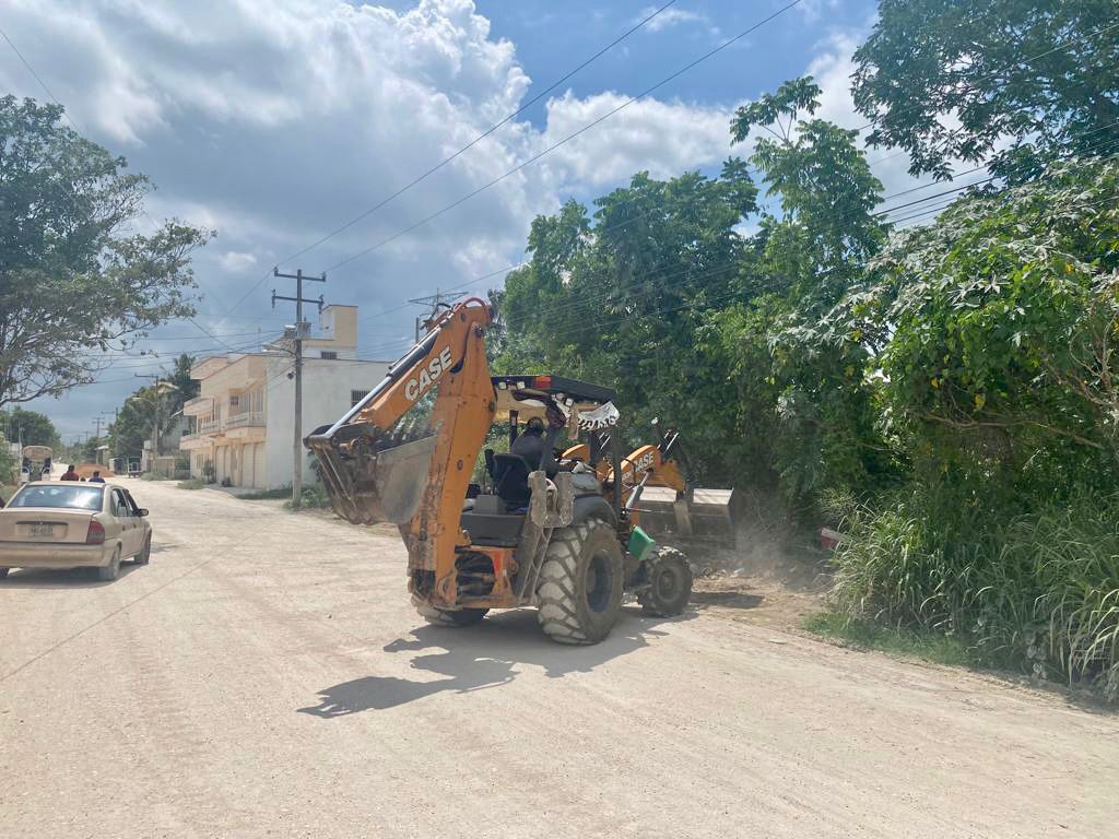 Conforme instrucciones de la Primera Autoridad Municipal, a través del director de Servicios Públicos, Antonio Chambé, se dispuso recursos materiales y equipo pesado para atender la rehabilitación del camino de acceso de la colonia con dos góndolas de 30 metros cúbicos para cementantes, y así nivelar las partes bajas de la calle de terracería para evitar encharcamientos, baches y lodazal en temporada de lluvias.