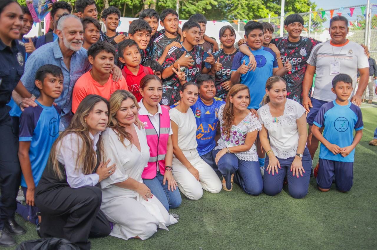Al realizar esta caminata, la Primera Autoridad Municipal dialogó con madres y padres de familia y convivió con las niñas, niños y jóvenes en las actividades “tejiendo sueños de paz” y “penaltis en contra de las adicciones”, entre otras, para convivir con las y los niños presentes, mientras inculcaban valores y sana convivencia.