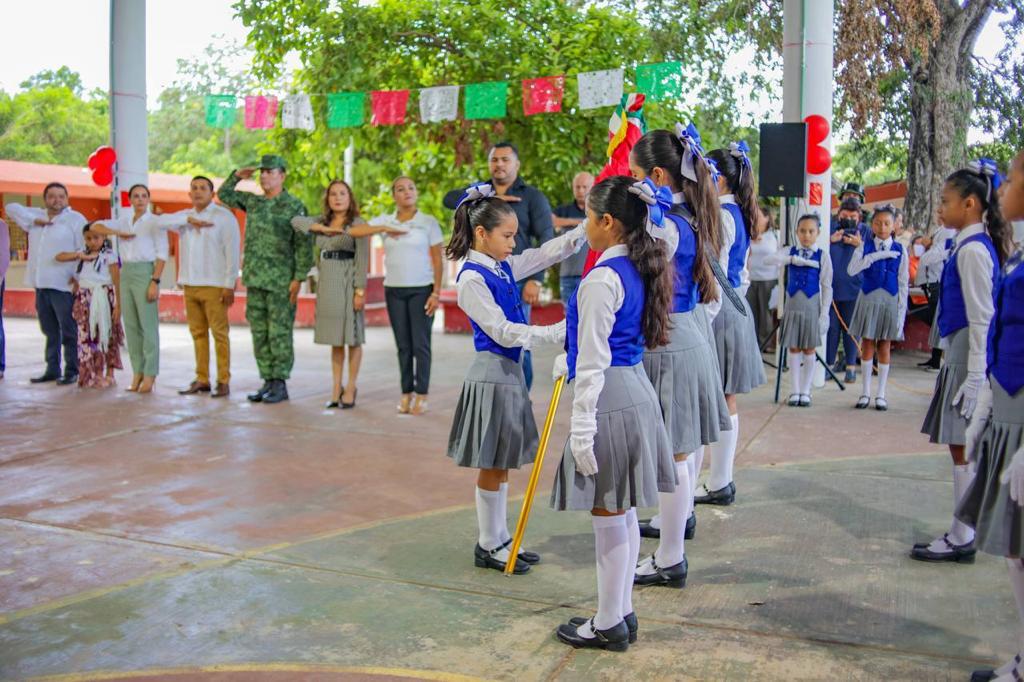 En el evento participaron también el comandante del 64° Batallón de Infantería, Samuel Javier Carreno; el contralmirante Francisco Figuereo Corona y el oficial Erubiel Gutiérrez Castillo, en representación de la Novena Región Naval y de la Guardia Nacional, respectivamente; el subsecretario de Educación en la zona norte de Quintana Roo, Miguel Medina Cortazar; la secretaria de Desarrollo Social y Económico, Berenice Sosa Osorio; el regidor Jorge Sanén Cervantes; el director de la institución, Irán Flauviano Ochoa Yah; y la presidenta del comité “La Escuela es Nuestra”, Rosalinda Escalante Pérez.
