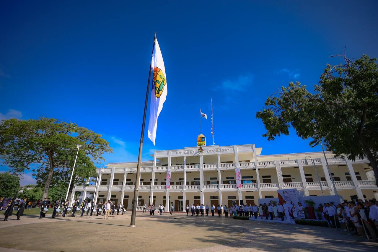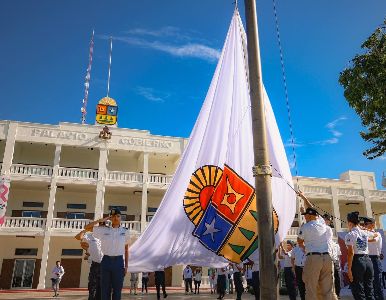Con las notas del Himno a Quintana Roo, los ahí presentes ratificaron la identidad y raíces del pueblo quintanarroense, para posteriormente presenciar el ascenso del lábaro patrio en lo más alto del asta bandera del Palacio de Gobierno de la ciudad de Chetumal, donde la Primera Autoridad Municipal acompañó a las autoridades a tan importante evento.