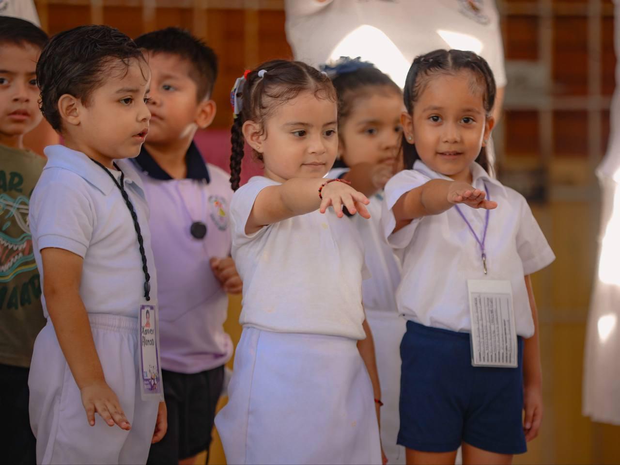 Cancún, Q. R., a 09 de octubre de 2023.- Como cada lunes y a primera hora, la Presidenta Municipal de Benito Juárez, Ana Paty Peralta, encabezó el evento cívico del Jardín de niños “Nuevo imperio maya” en donde también se presentó el programa “Vive sin Acoso”, en donde se llevan a las instituciones educativas diversas actividades en donde las niñas y niños adquieren herramientas que les permitan identificar conductas violentas y de alto riesgo, las cuales les contribuirán a disminuir los índices de acoso y violencia escolar en el municipio.