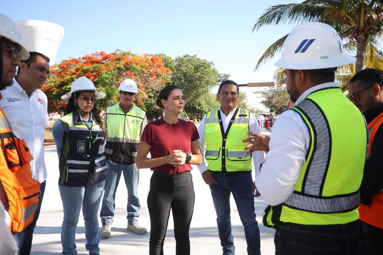 La Primera Edil destacó que los trabajos registran un avance superior al 60 por ciento, por lo que se avanza de manera rápida en la mejora de los 13.3 kilómetros que comprenden la vialidad, la cual facilitará la circulación en la ciudad y la conexión con el Aeropuerto Internacional de Cancún.
