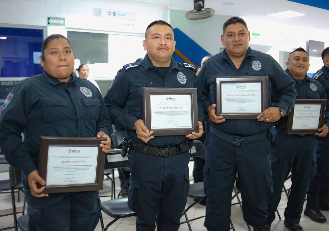 En el evento en las instalaciones de dicha corporación, la Primera Autoridad Municipal destacó que un paso para alcanzar ese objetivo es que hayan concluido debidamente el curso desarrollado por el Programa de Prevención y Reducción de la Violencia de la Agencia de los Estados Unidos para el Desarrollo Internacional (USAID/PREVI) y validado por el Secretariado Ejecutivo del Sistema Nacional de Seguridad Pública, como parte de la formación continua a quienes integran las instituciones pertenecientes al Sistema Nacional de Seguridad Pública.