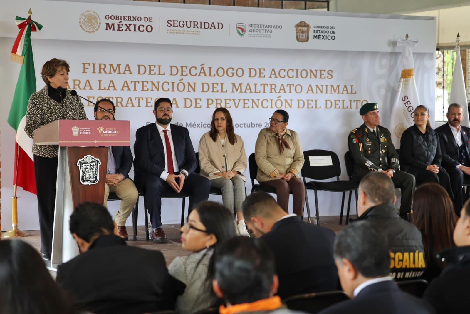 Estado de México, a 18 de octubre de 2023.- A fin de sumarse a iniciativas y políticas de bienestar animal que arrancaron a nivel nacional, la directora general de Ecología, Tania Fernández Moreno, firmó en adhesión al Decálogo de Acciones para la Atención del Maltrato Animal como Estrategia de Prevención del Delito que realizó la Secretaría de Protección y Seguridad Ciudadana realizada en el Estado de México.