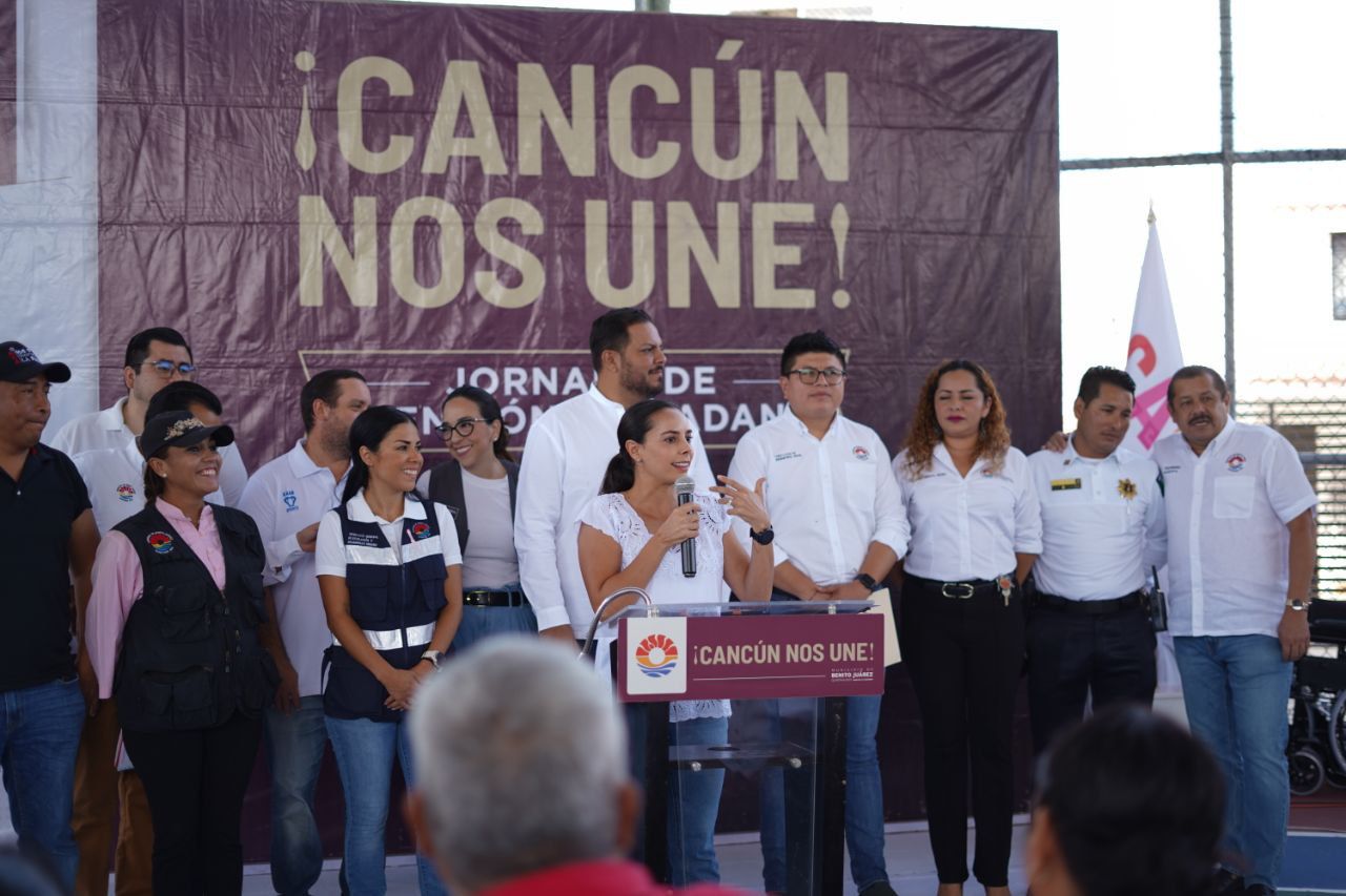 Cancún, Q. R., a 18 de octubre de 2023.- “Estamos aquí para servirles, secretarios, directores y funcionarios públicos estamos para darles solución a las gestiones de la ciudadanía en estas estas jornadas que tiene como fin acercar todos los servicios a las diferentes colonias de nuestra ciudad”, aseguró la Presidente Municipal de Benito Juárez, Ana Paty Peralta, en la edición número 16 de “¡Cancún nos une!” Jornada de Atención Ciudadana, que esta ocasión estuvo en la Supermanzana 74.