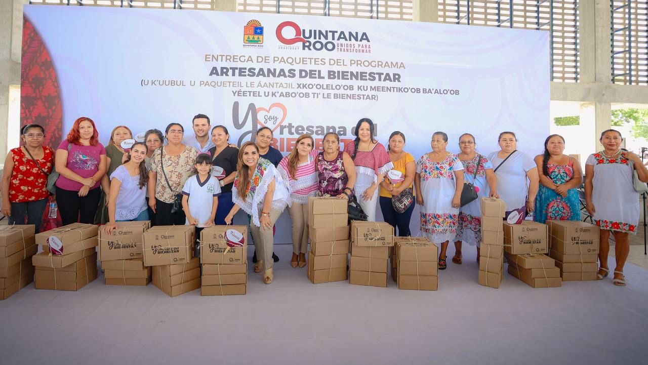 En el evento participaron también la presidenta honoraria del DIF Quintana Roo, Verónica Lezama Espinosa; el secretario estatal del Bienestar, Pablo Bustamante Beltrán; además de todas las beneficiarias que recibieron seis cajas cada una dependiendo de la actividad que realizan: bordado o urdido de hamaca, quienes expresaron su agradecimiento por dicho material para que emprendan su negocio.