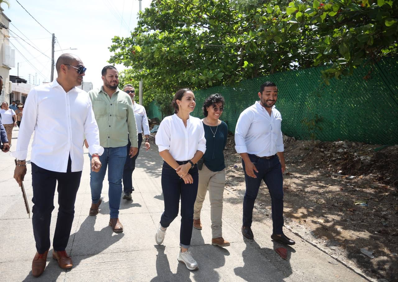 La Primera Edil estuvo acompañada de los representantes de la plaza Marina Puerto Cancún; el director de Distrito Cancún, Carlos del Castillo Álvarez, y vecinos de la citada colonia, quienes confían en que la obra iniciada en el 2020, concluya el próximo mes de junio de 2023.