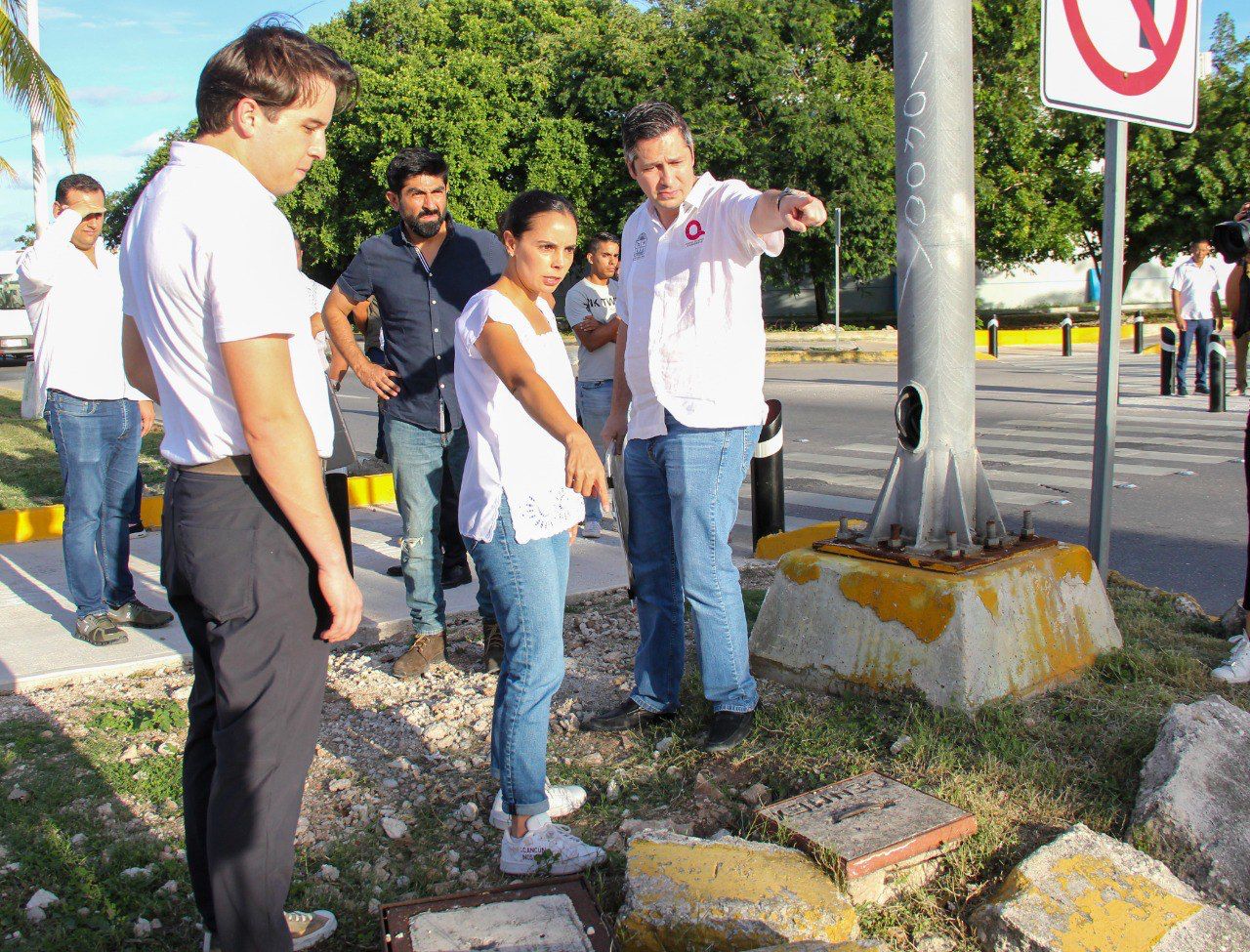 Además de recorrer el cruce de las avenidas Tankah e Xcaret, las autoridades caminaron sobre la intersección de Av. Bonampak con Av. Sayil, en donde informaron que se encuentran en progreso el cambio de semáforos y la adecuación de los camellones.