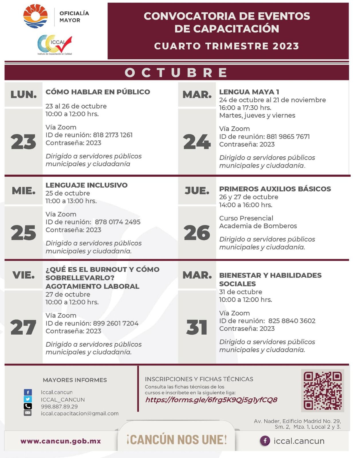 ICCAL_CANCUN, así como en el número 998 887 89 29 y el mail: iccal.capacitacion@gmail.com.