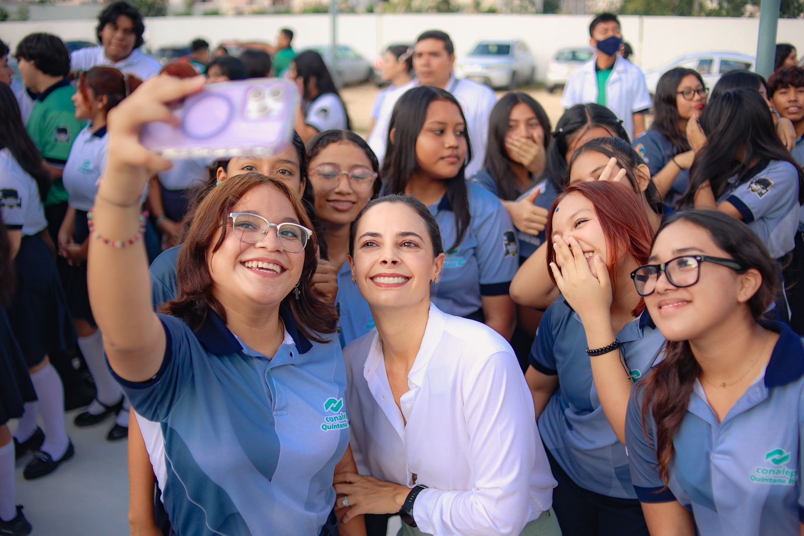 “Cancún necesita del trabajo en equipo y de los jóvenes para hacer de la ciudad una ciudad mejor, y yo sé que cada uno de ustedes, puede aportar muchísimo, un granito de arena para su comunidad, porque todos son ejemplo con buenas acciones, siendo buenos compañeros, apoyándose entre ustedes”, expresó.