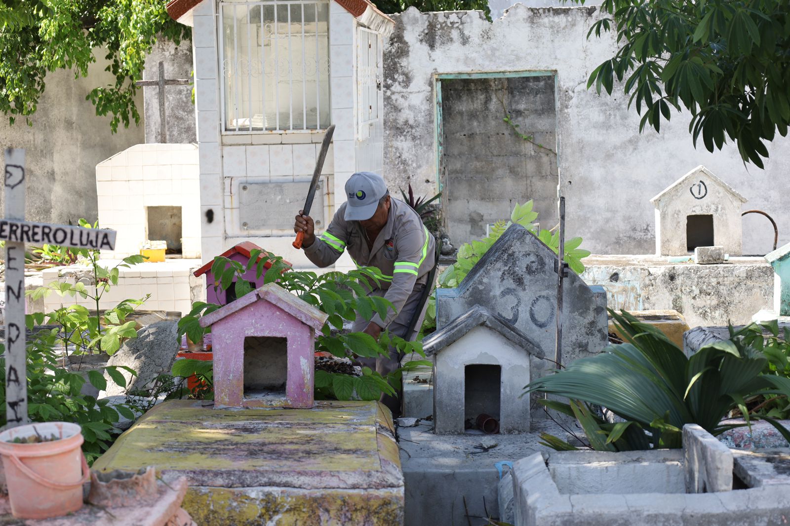 En ese sentido, la Primera Autoridad Municipal informó que con el objetivo de que las familias cancunenses cuenten con espacios dignos al ir a visitar las tumbas donde descansan sus seres queridos fallecidos, se efectúan labores como limpieza general de los cementerios ya mencionados y sus perímetros, destacando actividades como poda de árboles, chapeo, remoción de escombro y levantamiento de residuos sólidos y basura vegetal con ayuda de maquinaria.