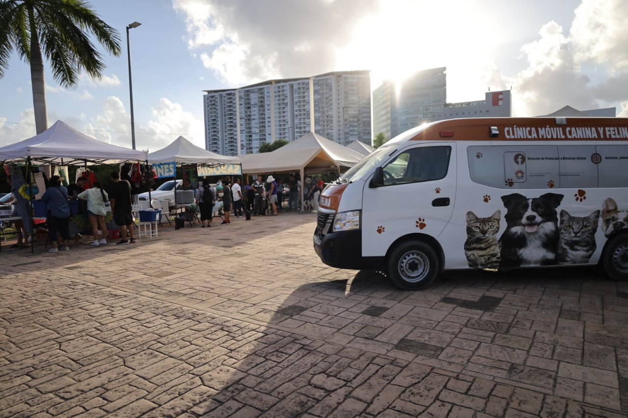 Como complemento a esta actividad y aportando al fortalecimiento de la economía cancunense, se situó un espacio dedicado para un tianguis con productos y servicios especializados para mascotas, con la intención de que quienes adopten un animal puedan equiparse con lo necesario para la comodidad de su nueva compañía, además, se instalaron emprendedores con productos innovadores.