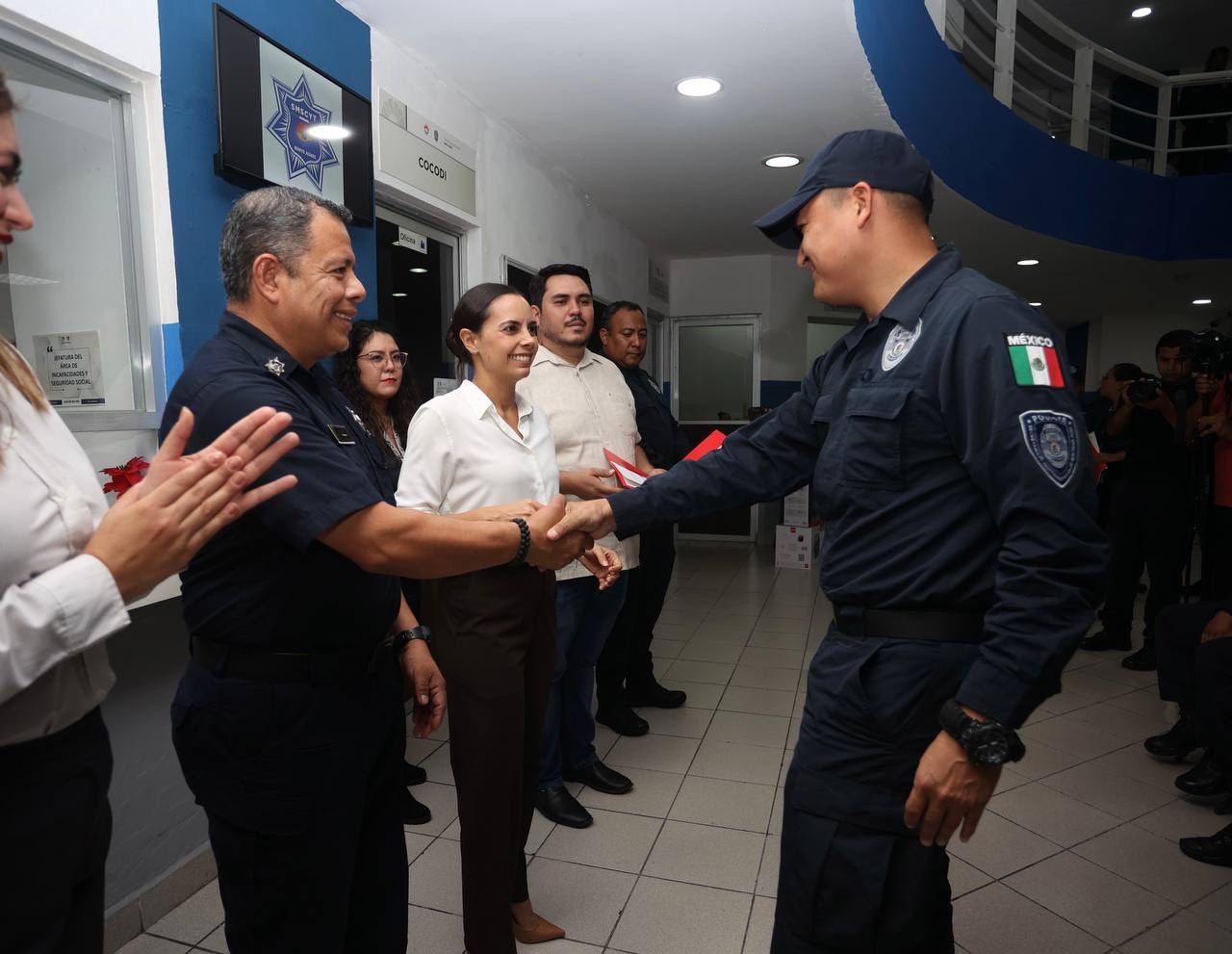 Como muestra de ello, la Primera Autoridad Municipal participó en la entrega de incentivos a 30 elementos operativos de la Secretaría Municipal de Seguridad Ciudadana y Tránsito por parte de la cadena comercial Oxxo, ya que han sido clave para las detenciones y puestas a disposición más relevantes en el periodo comprendido de mayo a octubre.