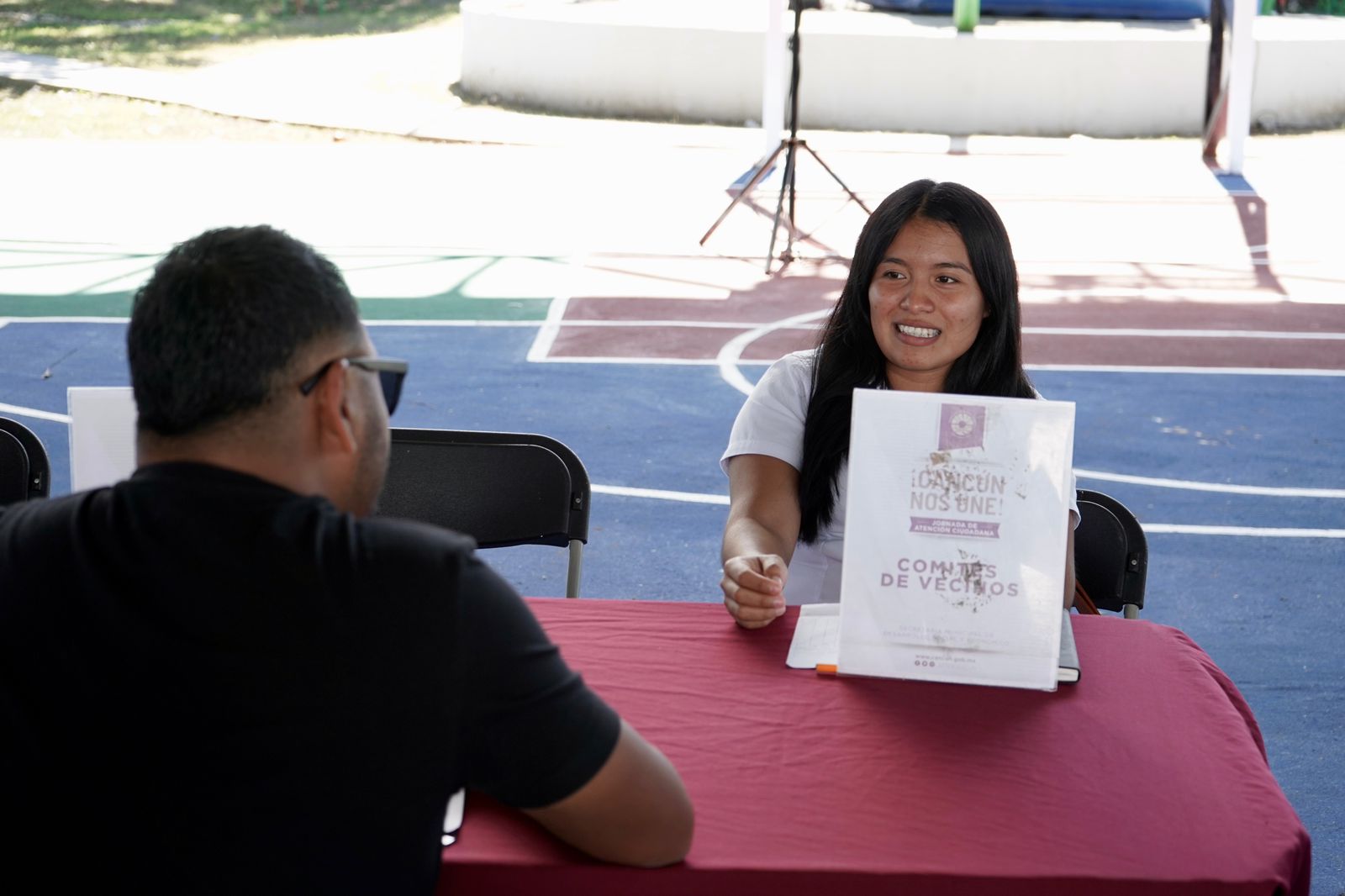 Cancún, Q. R., a 16 de noviembre de 2023.- Autoridades del gobierno de Benito Juárez, llevaron a cabo el registro de las y los cancunenses para asistir a la próxima edición de la Jornada de Atención Ciudadana “¡Cancún Nos Une!”, que se realizará el próximo miércoles 22 de noviembre en el Domo de la Supermanzana 237, donde serán atendidos personalmente por la otra la Presidenta Municipal, Ana Paty Peralta, quien los escuchará, atenderá y resolverá sus peticiones de la ciudadanía.