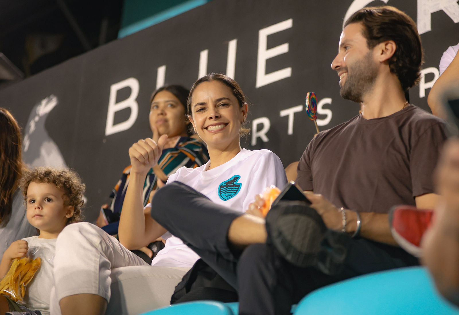 Durante el emocionante encuentro del clásico peninsular, la Alcaldesa, junto a familias cancunenses, alentaron al equipo desde las gradas, mientras los jugadores daban lo mejor de ellos en cada jugada para obtener la victoria en este importante partido.