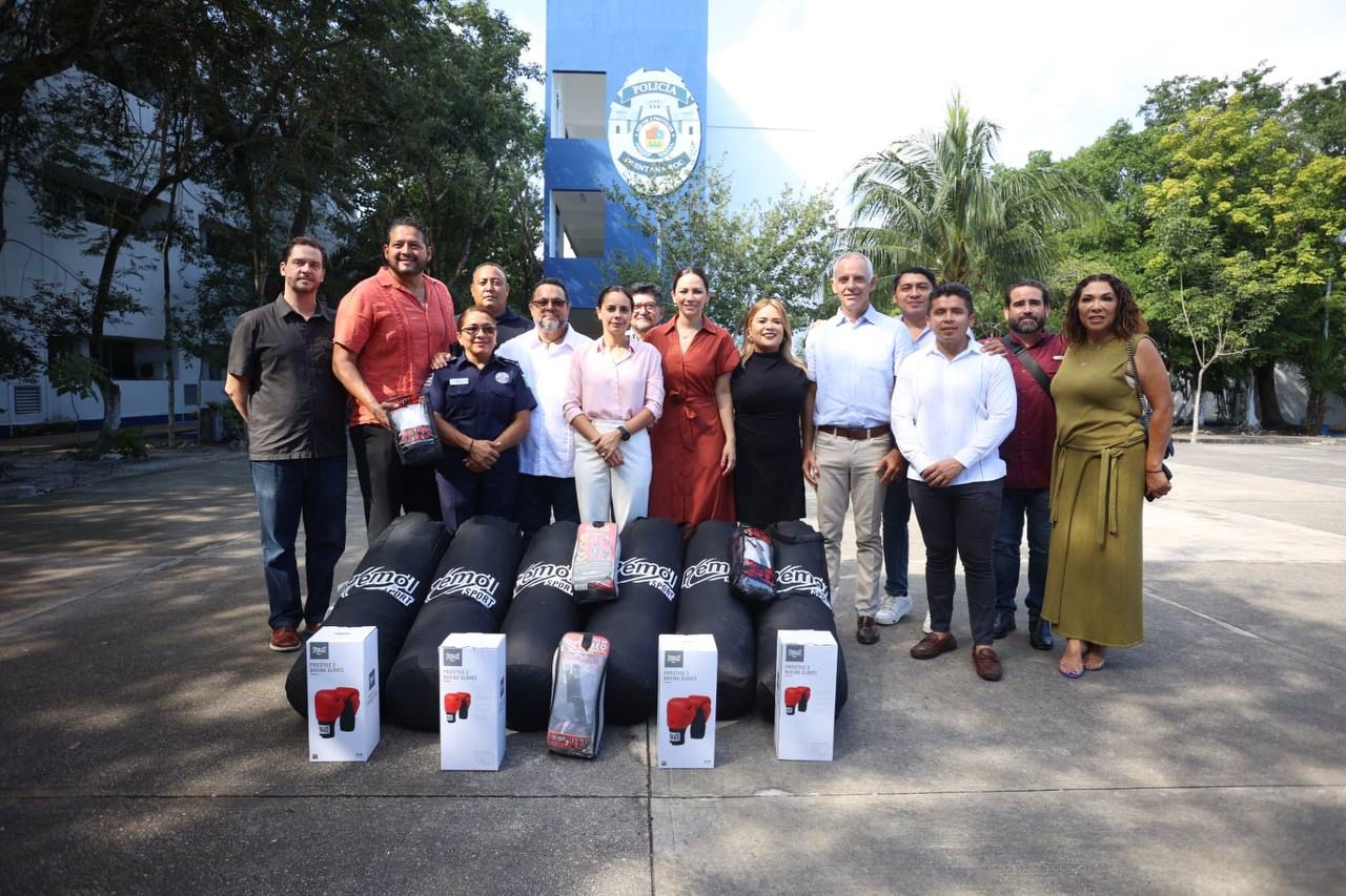 Al término de la sesión de la Comisión, atestiguó también la entrega de material deportivo de box por parte del Instituto del Deporte a dicha academia, consistente en costales y pares de guantes, lo que permitirá fortalecer el entrenamiento físico que tendrá el personal de dicha corporación.