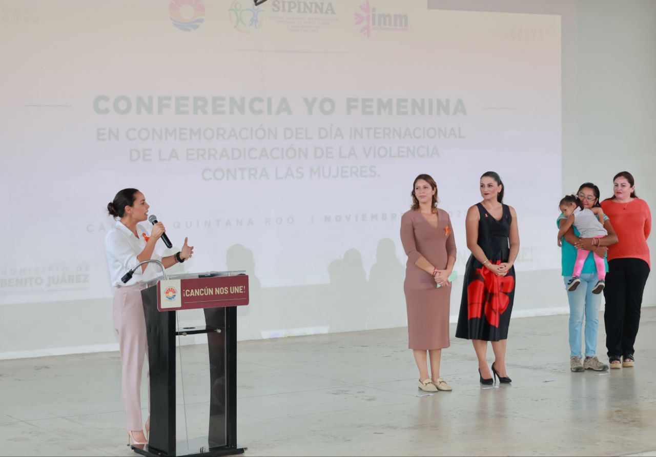 Cancún Q. R., a 28 de noviembre de 2023.- En el marco del Día Internacional de la Erradicación de la Violencia Contra la Mujer y como parte de la campaña mundial "16 Días de Activismo Contra la Violencia de Género", el Ayuntamiento de Benito Juárez que encabeza la Presidenta Municipal, Ana Paty Peralta, llevó a cabo la conferencia "Yo femenina" a la que se sumaron decenas de ciudadanas a favor de dicha causa.
