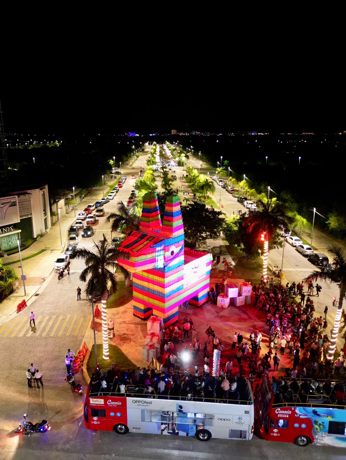 Al caer la tarde, Ana Paty Peralta junto con sus dos pequeños, alumnos del jardín de niños “Liz María Serradel”, madres de familia, directores de dicho plantel y hasta el mismo “Santa Claus”, subieron a los camiones “Turibus” de la empresa ADO, para poder disfrutar del recorrido de encendido por todas las glorietas, en las cuales disfrutaron de una sana convivencia entre villancicos navideños, botargas, dulces y regalos de los patrocinadores.