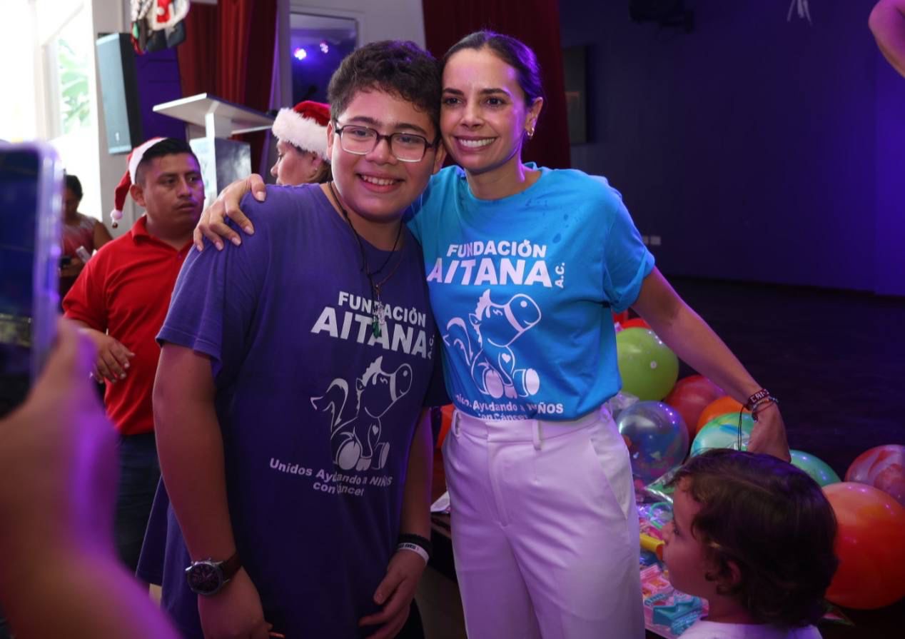 Cancún, Q. R., a 16 de diciembre de 2023.- En una emotiva convivencia, la Presidenta Municipal, Ana Paty Peralta, participó en la posada navideña de Fundación Aitana, que se realizó para festejar la magia de la Navidad junto a niñas y niños, acompañados de sus familia, con el fin darles ánimos a la batalla que enfrentan contra el cáncer.