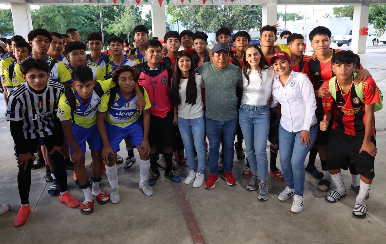 Antes de concluir la actividad, entregó un reconocimiento a Juan Humberto Marín Garrido, oriundo del lugar y jugador de Cancún FC; además de uniformes a los equipos que llegaron a las finales: Gemelos 227, Pechugas FC, Barcelona, Tercos y Guerreros.
