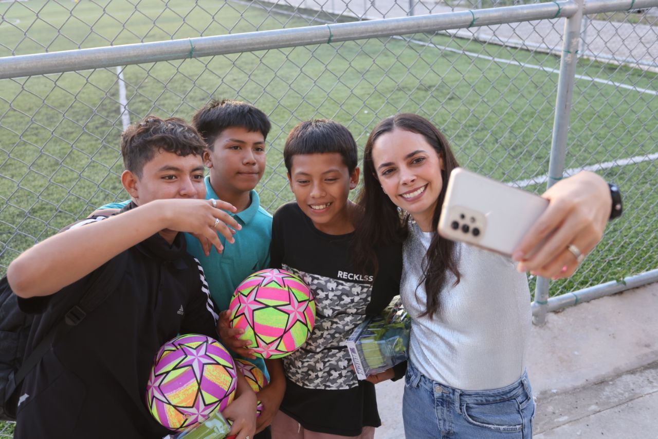 Después de ser recibida por jugadores de fútbol que participaron en una competencia previa en el mismo recinto, la Primera Autoridad Municipal destacó que para su gobierno es una prioridad la niñez y el deporte, por lo que reafirmó su compromiso de continuar impulsando la realización de las diferentes disciplinas en la ciudad.