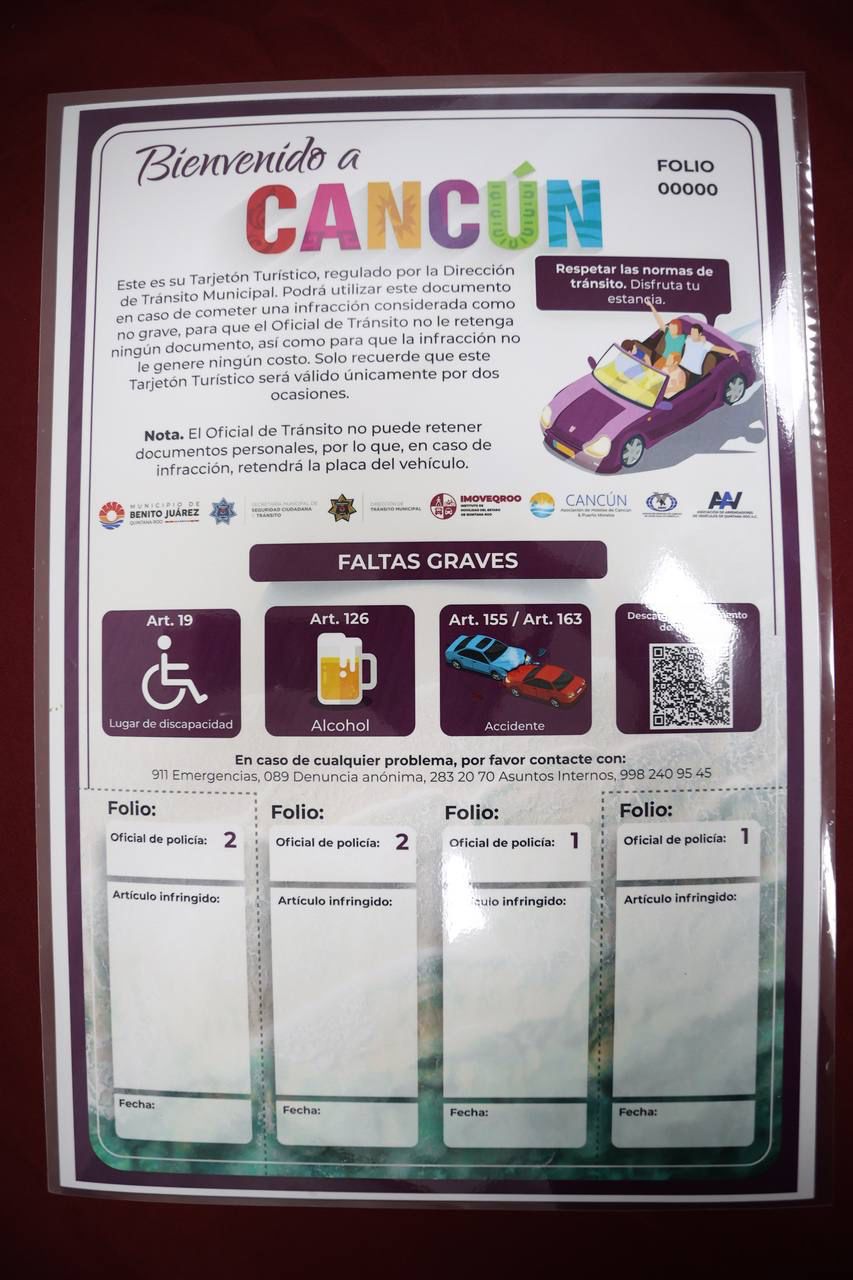 ”Cancún es el primer municipio en hacerlo. Este tarjetón es una punta de lanza para trabajar en contra del combate a la corrupción en los turistas y estos se sientan arropados y se va manejar mediante las arrendadoras”, dijo.