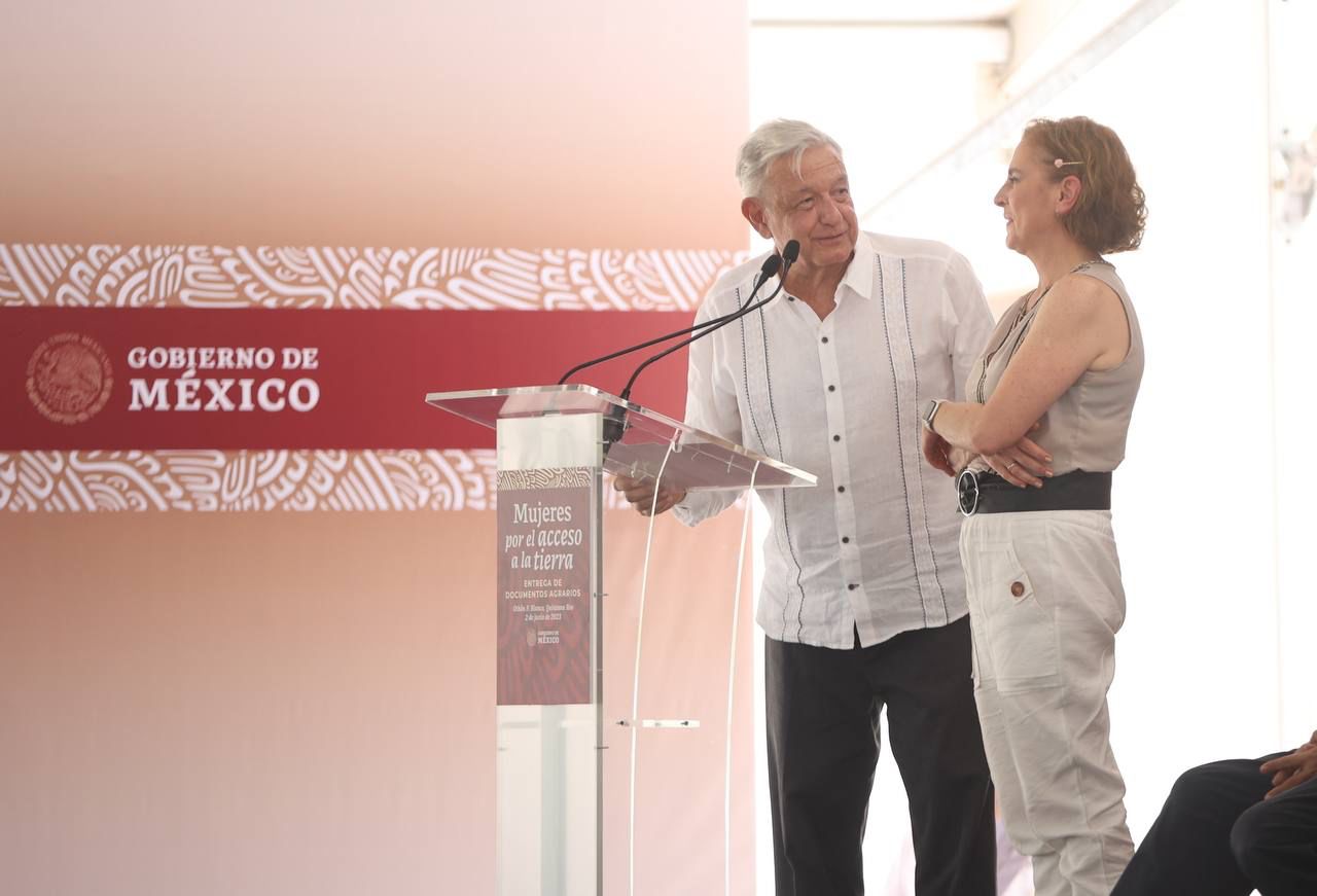 Chetumal, Q.R., a 02 de junio de 2023.- “Solo nuestro presidente ha hecho justicia y devuelto la esperanza a las mujeres. Como lo dijo la doctora Beatriz Gutiérrez Müller, éstas eran tierras de sus ancestros y hoy las mujeres reciben estos títulos que les dan certeza jurídica”, comentó la Presidenta Municipal de Benito Juárez, Ana Paty Peralta, tras atestiguar la entrega de certificados de derechos agrarios a favor de beneficiarias del programa federal "Mujeres por el acceso a la tierra", encabezada por el Presidente Andrés Manuel López Obrador y la gobernadora, Mara Lezama.