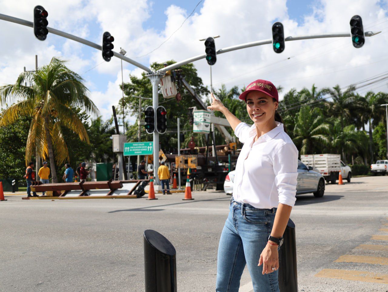 Posteriormente, las autoridades se trasladaron hacia la Av. Xcaret con Av. Tankah; a la Av. Tulum con Av. Cobá, glorieta conocida como “El Ceviche” y finalmente a la Av. Bonampak con Av. Cobá, en donde se constató el cambio de semáforos y controladores, donde la Alcaldesa precisó que se migró de un controlador modelo C-200 al C-5000, modelo más actual y en condiciones para modernizar la infraestructura vial de la zona.