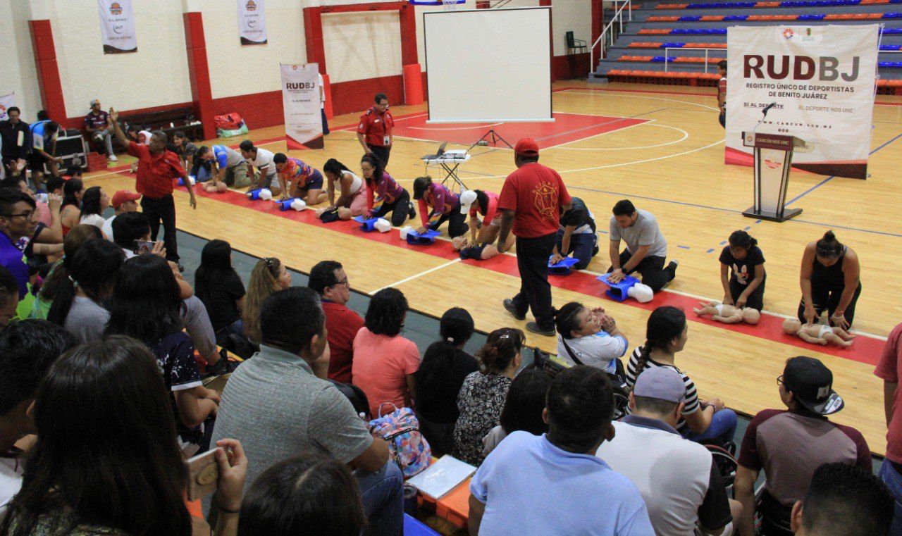 tradicional “ola” todos alzando las manos coreando al unísono “Sí al deporte, ¡Cancún