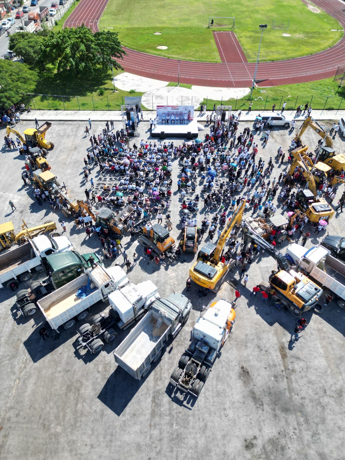 Cancún Q. R., a 19 de enero de 2024.- Autoridades del Ayuntamiento de Benito Juárez y del gobierno de Quintana Roo atestiguaron las tomas de protesta de los liderazgos del Sindicato Mexicano de Arrendadores de Maquinaria, Bancos de Material, Terraceros y Construcción en General; así como del Sindicato Nacional de Obreros, Choferes, Transportistas y Empleados de la Construcción en General, delegación Isla Mujeres, pertenecientes a la Confederación Revolucionaria de Obreros y Campesinos (CROC).