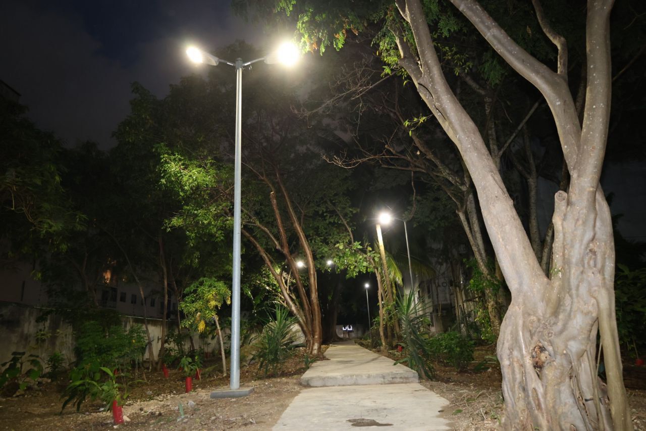 Cancún, Q. R., a 20 de enero de 2024.- Con el objetivo de garantizar seguridad, prevenir hechos delictivos, embellecer la ciudad y mejorar la calidad de vida de los ciudadanos, el Ayuntamiento de Benito Juárez, a través de la Dirección General de Servicios Públicos, con la Brigada Integral, Transformando Cancún Contigo, instalaron 28 luminarias y colocaron 10 postes de doble percha en la Supermanzana 40.
