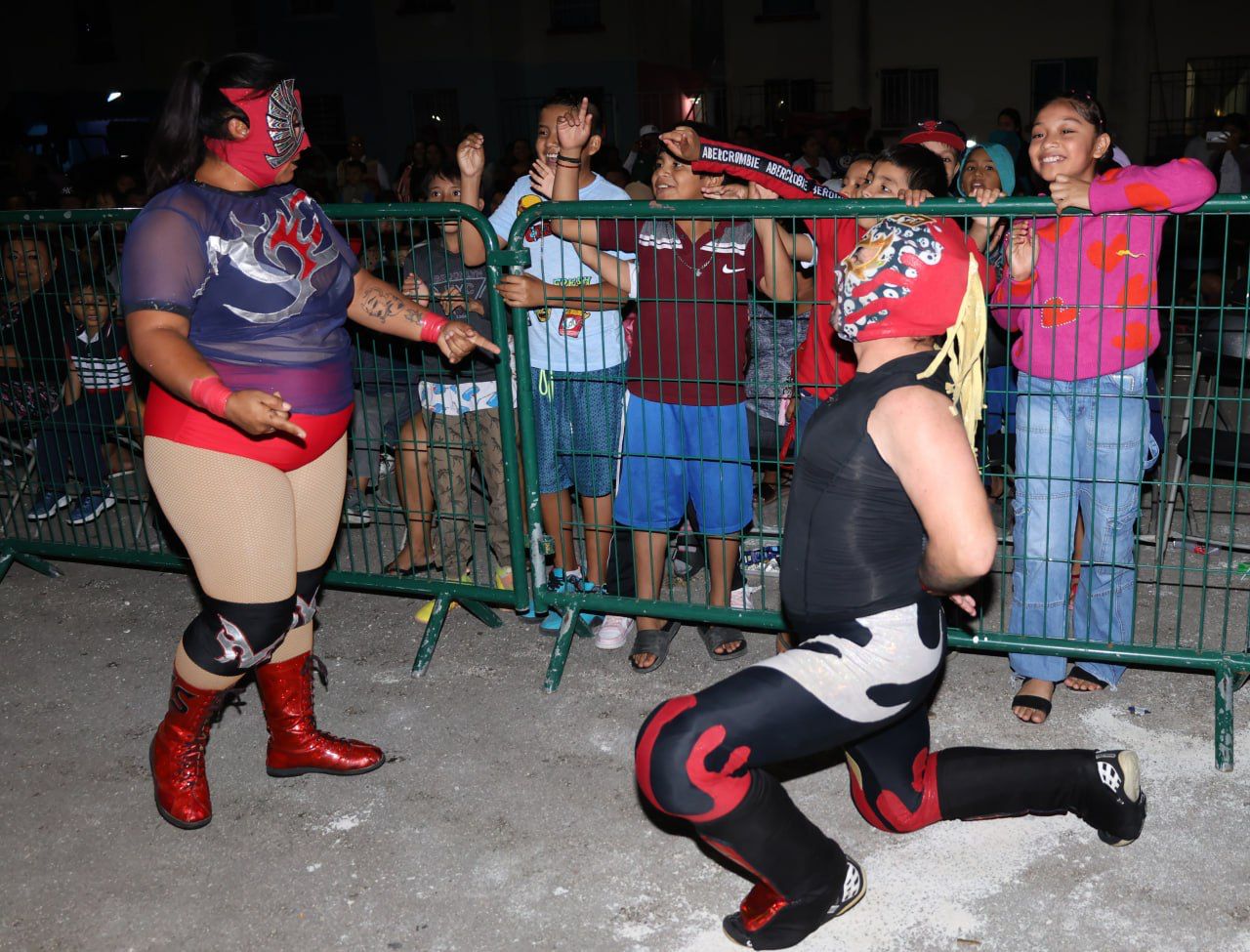 En medio de aplausos, gritos, porras, y la gente que se dividía entre rudos y técnicos, la Primera Autoridad Municipal, acompañada de funcionarios públicos, niñas, niños, jóvenes, madres y padres de familia disfrutaron y se divirtieron con este gran entretenimiento gratuito.