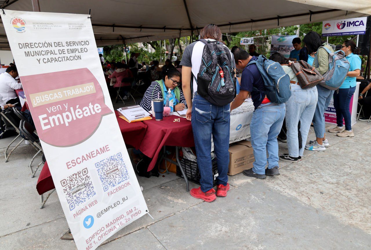 Cancún Q. R., a 22 de enero de 2024.- La explanada del Ayuntamiento de Benito Juárez, fue sede de la primera edición de 2024 de Ven y Empléate Itinerante en la categoría “Rosa”, programa que realiza la Secretaría de Desarrollo Social y Económico, donde se tuvieron mil 532 vacantes para buscadores de empleo y participaron 41 empresas socialmente responsables.