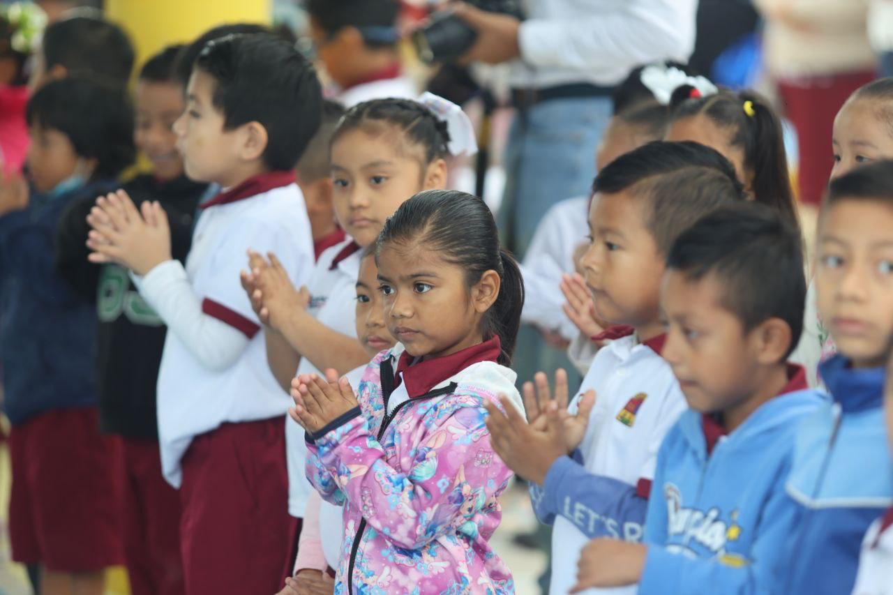 A su llegada al evento, la Primera Edil fue recibida por las niñas y los niños emocionados, a quienes les reafirmó que este espacio nuevo es gracias a la visión del Presidente Andrés Manuel López Obrador, de hacer las cosas diferente, de gobernar de una manera distinta. Además, recordó que en esa escuela es la segunda ocasión que se realiza una inversión con recursos federales, ya que anteriormente se construyó un domo; y reafirmó que como gobierno municipal trabajarán para mejorar la colonia, con un nuevo parque para beneficio de todos los vecinos.