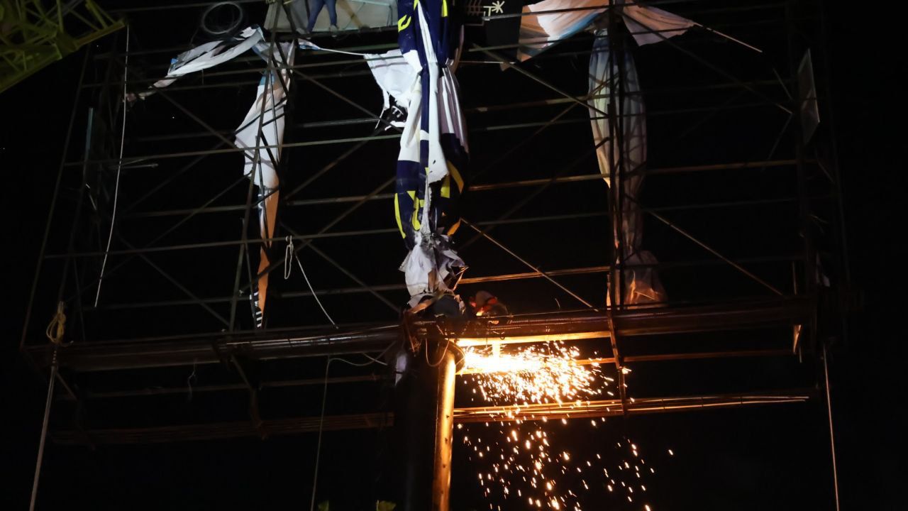 Como acto de autoridad, la Presidenta Municipal, Ana Paty Peralta; junto a diversos servidores públicos como el secretario general del Ayuntamiento, Pablo Gutiérrez; la secretaria municipal de Ecología y Desarrollo Urbano, Nahielli Orozco Lozano; la directora de Imagen Urbana, Margarita Jiménez Bonifaz y el titular de Protección Civil, Antonio Riveroll Ribbon; entre otros, supervisaron el desmontaje de uno los unipolares ubicados en el Blvd. Colosio.