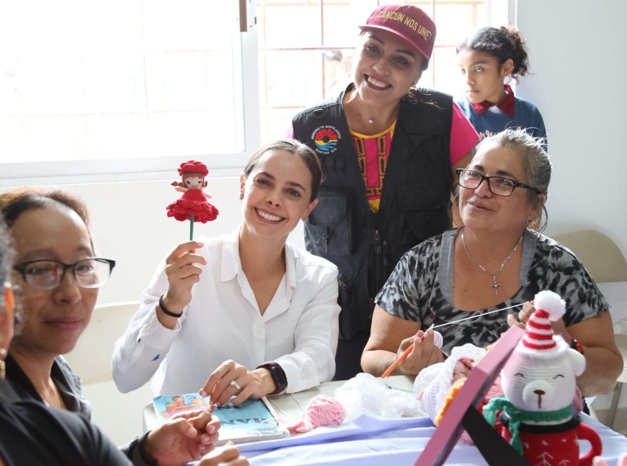 Además de realizar un recorrido por las instalaciones remodeladas del salón de usos múltiples, la Primera Autoridad Municipal convivió con un grupo de tejedoras que toman clases de esa manualidad en otra aula de dicho CDC y que es uno de los diferentes talleres que se ofrecen en esos sitios.