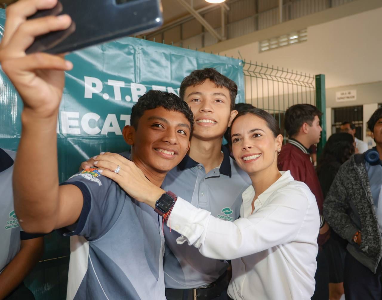 “La paz se construye con la colaboración, con el trabajo en equipo, con la juventud, ahí se construye la paz. Todos coincidimos que queremos vivir en un Cancún en paz, en un Cancún seguro, entonces todos tenemos que ser corresponsables con ello”, expresó a los alumnos, quienes desde su arribo la recibieron con aplausos.