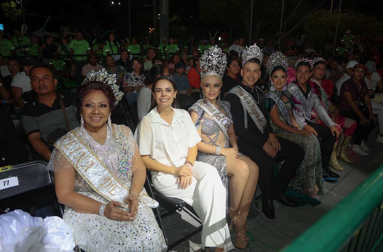 En los diferentes bloques se observó la entusiasta participación de los reyes y reinas de las seis categorías, comparsas también de diferentes rangos de edad desde infantiles hasta adultos, asociaciones civiles, academias de baile, escuelas de nivel medio superior, entre otros asistentes, mientras que al frente de algunos contingentes se pudieron observar carros alegóricos decorados de forma creativa como fue uno del Tren Maya, obra emblemática del Gobierno de México.