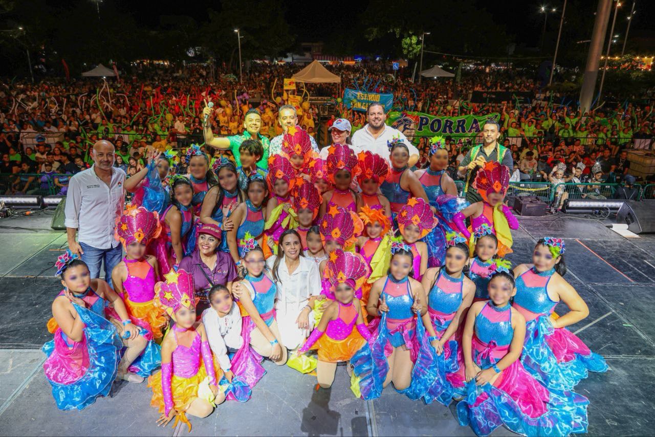 “Vamos a seguirnos uniendo como familia en el carnaval, que todos los días hagamos la diferencia cada uno de nosotros con buenas acciones como cancunenses y que pongamos el ejemplo. Que disfruten mucho de esta fiesta”, expresó Ana Paty Peralta a su llegada al escenario principal, en el que bailó con niñas y niños de las comparsas en ese rango de edad.