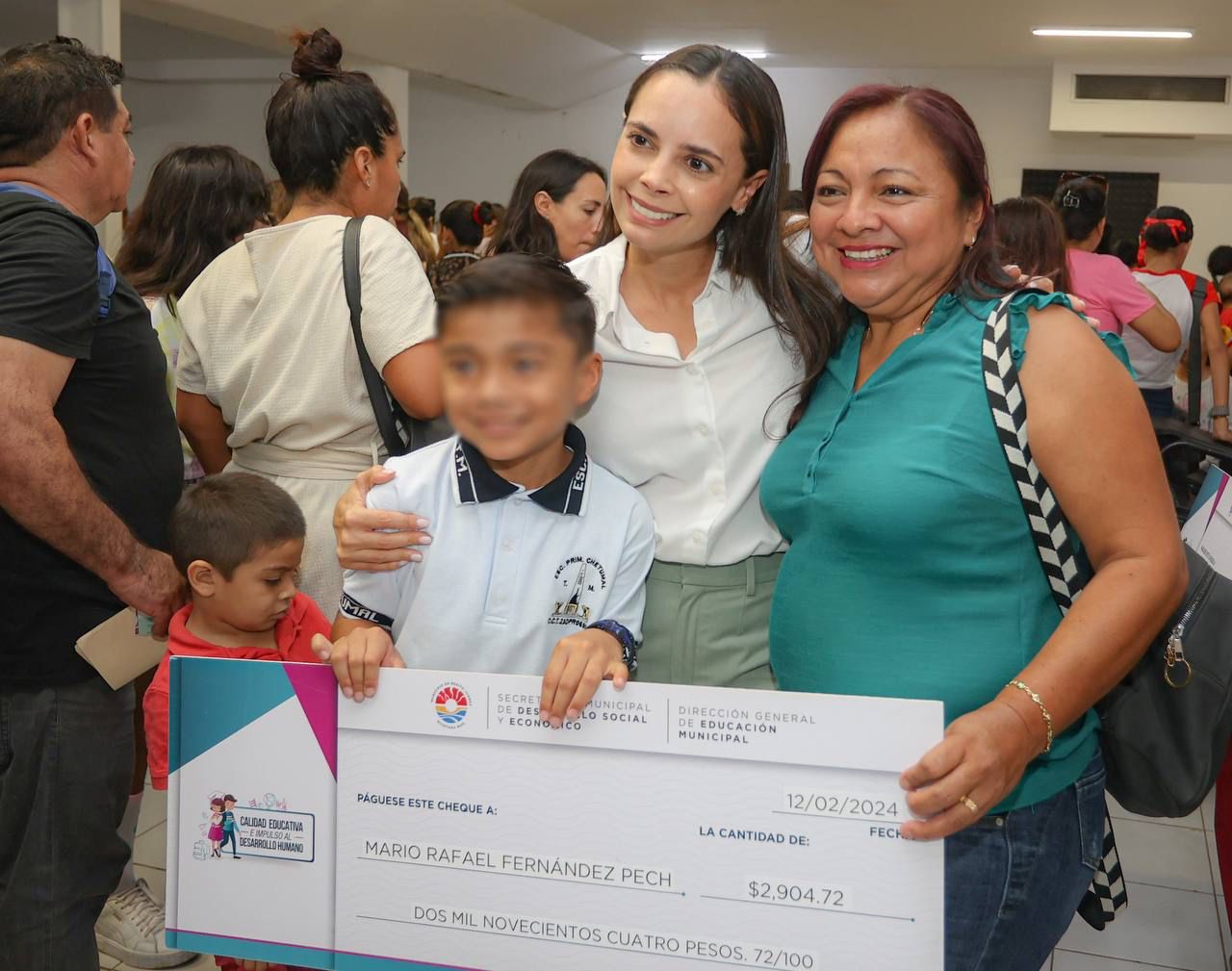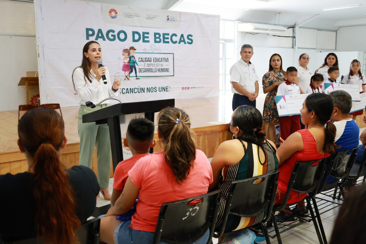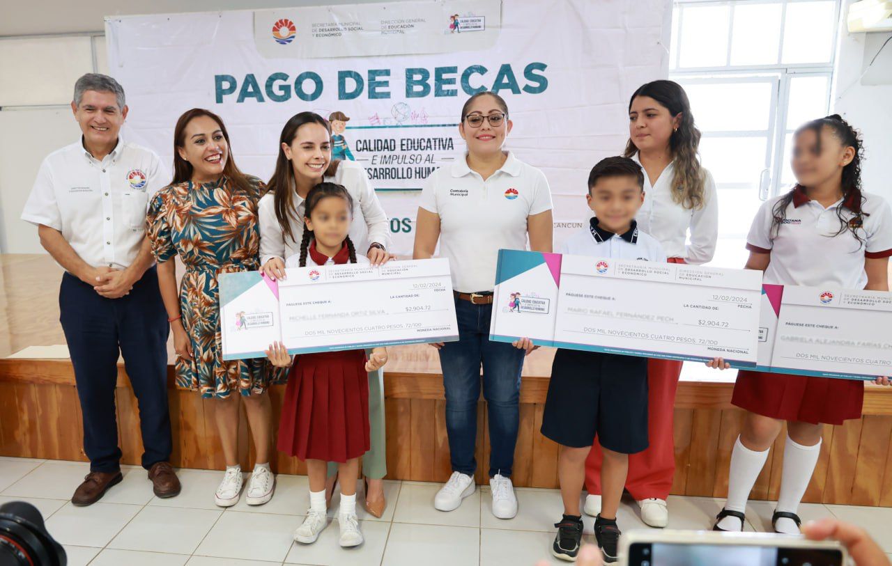 Cancún, Q. R., a 12 de febrero de 2024.- De acuerdo con la programación, el Ayuntamiento de Benito Juárez, a través de la Secretaría de Desarrollo Social y Económico, y la Dirección de Educación Municipal, llevó a cabo la última fecha del pago de becas, correspondiente al primer periodo del ciclo escolar 2023-2024, que fue para mil 841 alumnos de nivel primaria.