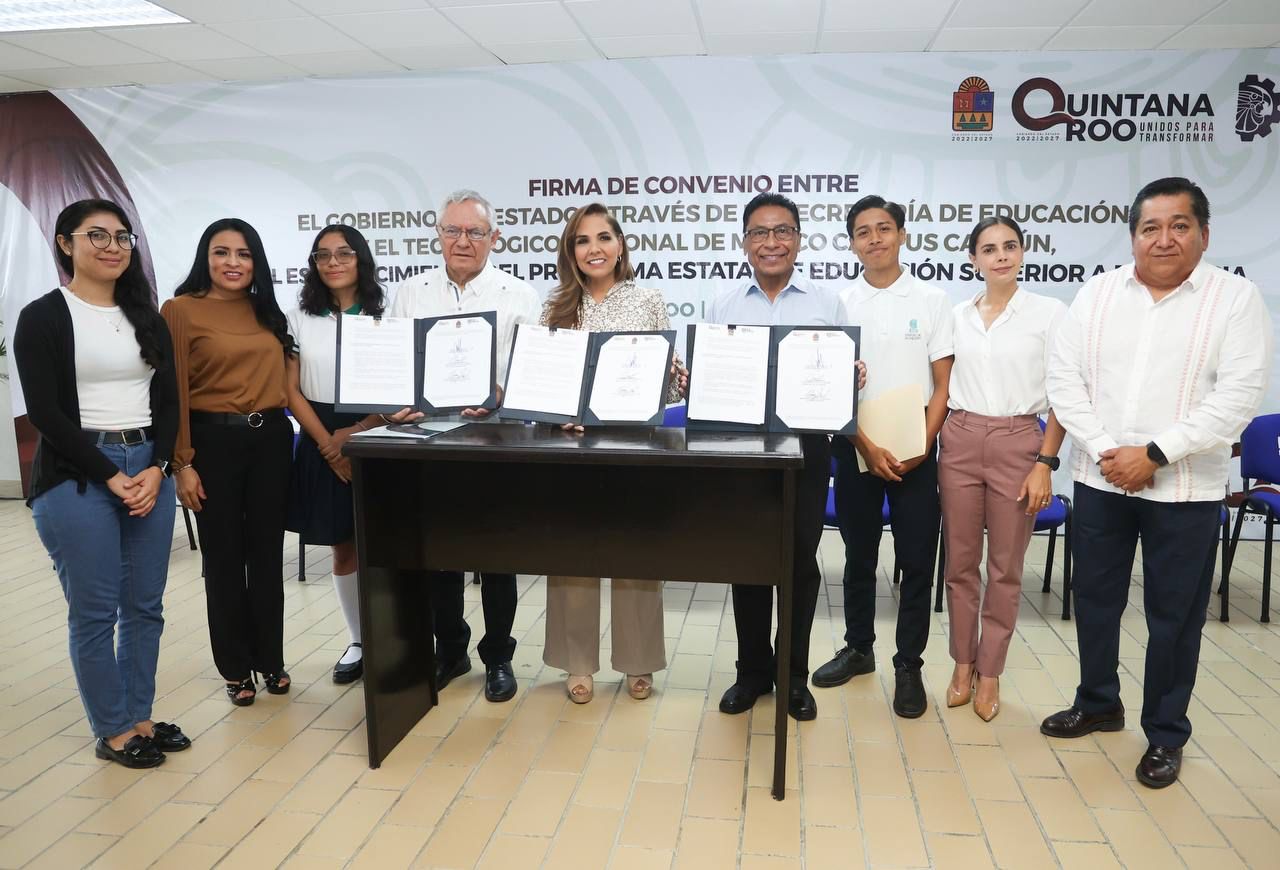 Como parte del evento, la Presidenta Municipal atestiguó la firma del convenio correspondiente, además del Nuevo Acuerdo por el Bienestar y el Desarrollo, en el que participaron la Secretaría de Educación de Quintana Roo, la Gobernadora y el titular nacional de dicha institución académica, así como la entrega del diseño de un tríptico con la nueva oferta que ofrecerán a los jóvenes.
