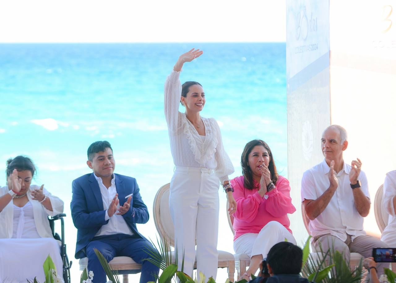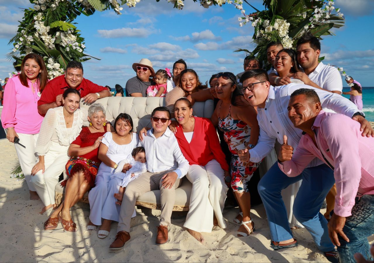 Cancún, Q. R., a 14 de febrero de 2024.- Bajo un atardecer maravilloso, con el mar azul turquesa de fondo y en el marco del Día del Amor y la Amistad, el Ayuntamiento de Benito Juárez, a través de la Dirección General del Registro Civil en coordinación con el Sistema para el Desarrollo Integral de la Familia (DIF) Municipal, realizó las bodas colectivas 2024 en Playa Delfines, donde 350 parejas cancunenses contrajeron nupcias.