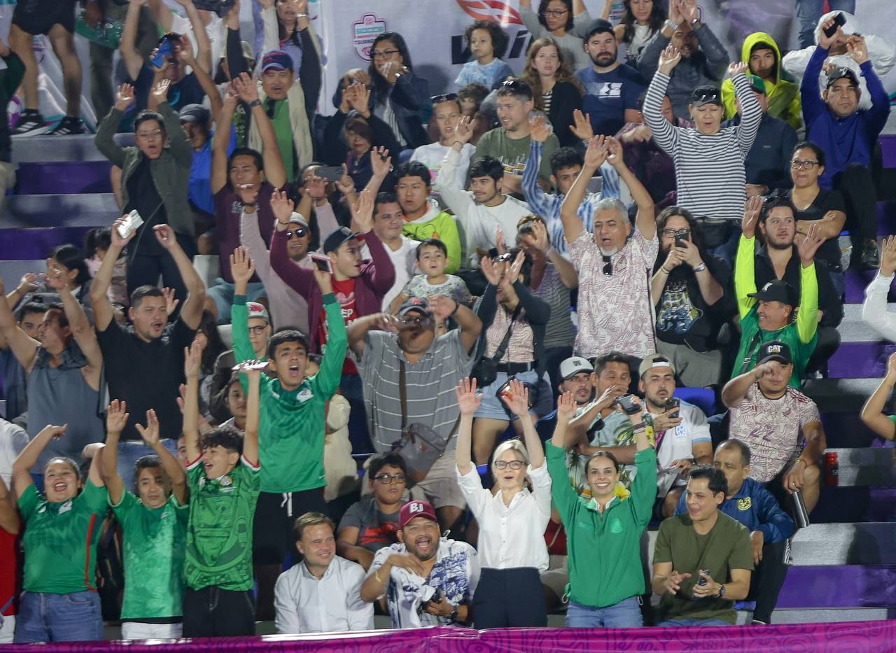 Como respaldo con el equipo local y con el deporte en la ciudad, la Presidenta Municipal, Ana Paty Peralta, junto al titular del Instituto del Deporte, Alejandro Luna López, celebró la victoria de México, que se posiciona como líder de su grupo y enfrentará este viernes a Hungría.